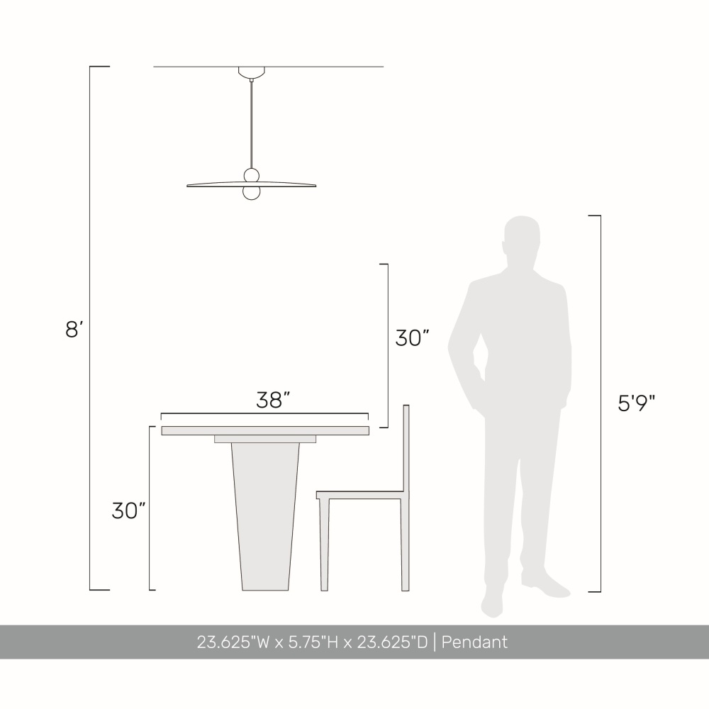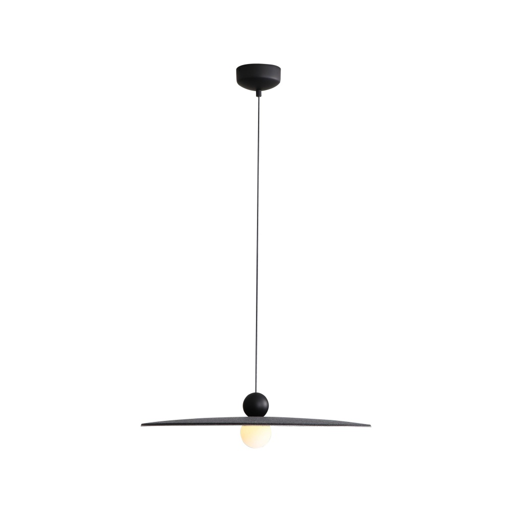 Bring modern elegance into your home with the Golden Lighting Faroe 24in Integrated LED Pendant. Featuring a felt shade and a Matte Black frame, it creates a welcoming atmosphere. The Flecked Black felt shade enhances sound quality while providing a soft, glare-free illumination, pairing rich hues with acoustic functionality. The epitome of clean, modern style, the Matte Black finish offers timeless versatility and is an ideal choice for any decor. Add a stylish statement to kitchens, dining rooms, or bedrooms — perfect for focused yet decorative illumination in entryways, foyers, and even bathrooms. Dry Location Rated: Ideal for indoor spaces not subject to moisture, such as bedrooms, living rooms, and hallways. Sloped-Ceiling Compatible, easily install on angled ceilings and customize the hanging length to suit your space with adjustable height: Min: 7.875"- Max: 127.875". Overall Dimensions: 23.63"W x 5.75"H x 23.63"D. Enjoy brilliant, energy-efficient illumination with integrated LED technology providing 320 rated lumens and a 3000K CCT for a warm glow. The Faroe collection blends luxury with responsibility, proving that design can be both beautiful and eco-friendly.