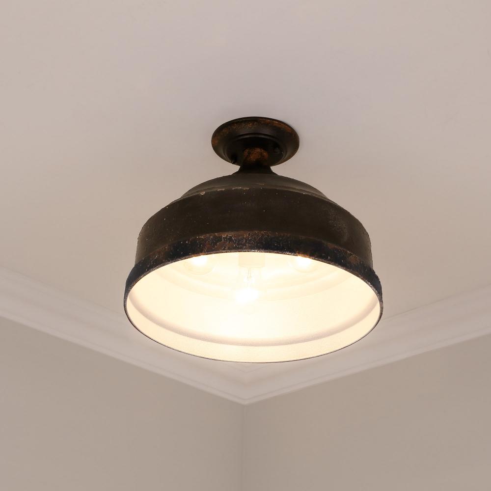 Bring industrial elegance into your home with the Golden Lighting Keating 3-light Semi-Flush Mount. Featuring a metal shade and an Antique Black Iron frame, it creates a welcoming atmosphere. The metal shade adds texture, showcasing an Antique Black Iron finish that features a weathered exterior revealing glimpses of a warm, antiqued gold base beneath. This ruggedly distressed look gives off a powerful character statement, perfect for industrial or rustic décor styles.