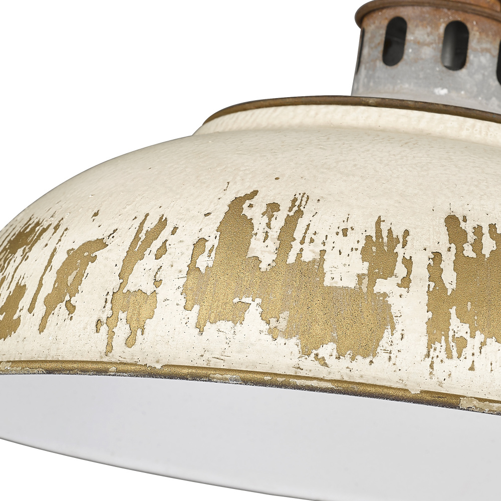 Brighten up your living space with the Golden Lighting Kinsley 1-light Swing Arm Wall Lamp, an embodiment of vintage elegance. This fixture showcases a metal shade and a stunning Antique Ivory finish, radiating warmth and history into any room. The shade features a delicate craquelure texture and distressed details that reveal a gilded underlayer, perfectly complementing its charming appeal. The Aged Galvanized Steel finish adds a touch of timeless beauty, making this lamp a standout piece in any décor. Rated for Damp Locations, it's suitable for semi-enclosed areas, and its adjustable swing arm allows precise light direction, making it perfect for bedrooms and home offices. Overall dimensions are 14"W x 12.63"H x 21.5"D, and it requires 1 E26 Medium base bulb (not included) with a maximum wattage of 100. Experience the perfect combination of vintage charm and functionality with this exquisite lighting fixture.