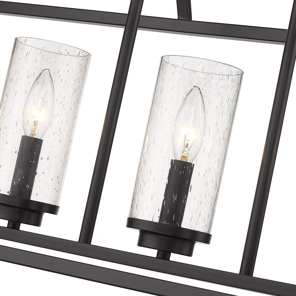 Golden Lighting Mercer 5-light Island Light in Matte Black and Seeded Glass