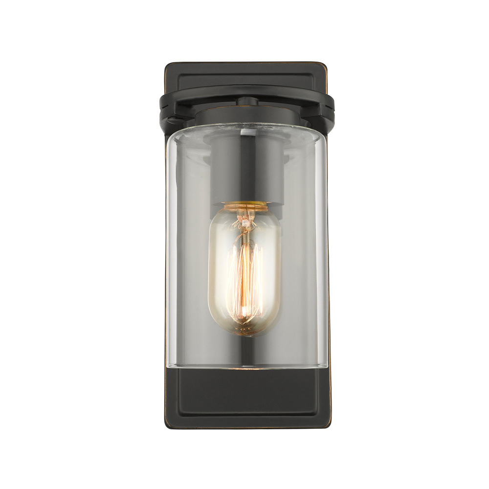 Bring refined charm into your home with the Golden Lighting Monroe 1-light Wall Sconce. Featuring a glass shade and a Matte Black frame, this sconce creates a warm and inviting atmosphere. The clear glass shade offers brilliant, unobstructed light, showcasing the beauty of the bulb and fixture design perfectly. The smooth, polished finish allows for exceptional illumination, suitable for various decor styles. The Matte Black finish is timeless and smooth to the touch, providing elegance that complements various interior designs, from industrial to contemporary. Ideal for enhancing hallways, stairways, and bathrooms, the Monroe Sconce is Damp Location Rated, making it perfectly suited for covered spaces with occasional moisture. Overall dimensions measure 4.5"W x 10"H x 6"D, and it requires 1 E26 Medium base bulb (not included), with a maximum wattage of 60. The Monroe Wall Sconce is a stylish and functional design, perfectly suited for creating cozy ambiance in any room.