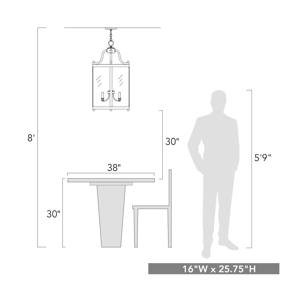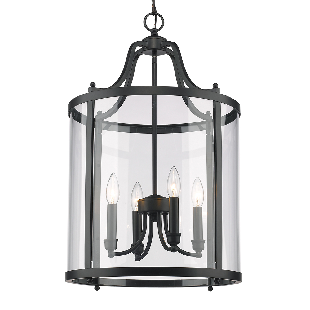 Bring timeless sophistication into your home with the Golden Lighting Payton 4-light Pendant in Matte Black. Featuring a glass shade and a matte black frame, it creates a welcoming atmosphere with brilliant illumination. The clear glass shade offers brilliant, unobstructed light, polished to a high-gloss shine, allowing the beauty of the bulb to take center stage. The matte black finish is both timeless and endlessly versatile, perfectly smooth to the touch, it complements a wide array of decor from minimalist to contemporary. Ideal for indoor spaces not subject to moisture, such as bedrooms, living rooms, and hallways. Easy to install on angled ceilings, it features adjustable height from 28.75" to 100.75". Overall Dimensions: 16"W x 25.75"H x 16"D. Requires 4 E12 Candelabra base bulbs (not included). Max 60 wattage per bulb. This exquisite light fixture not only adds a stylish statement but also promises quality construction for years of enjoyment.
