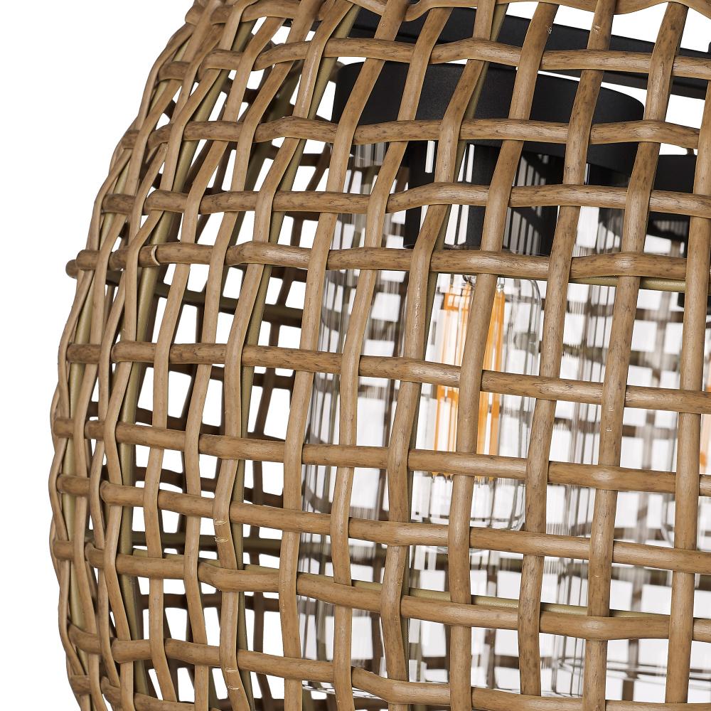Bring boho elegance into your home with the Golden Lighting Piper 3-light Outdoor Pendant in Natural Black. Featuring a wicker shade and a natural black frame, it creates a welcoming atmosphere. The Maple All-Weather Wicker shade features warm, honey-brown colors with natural variations, woven into an airy, open-weave pattern. This craftsmanship brings a touch of coastal charm and textured warmth to your space, making it perfect for covered outdoor areas. Our Natural Black finish boasts a softer, matte surface reminiscent of raw iron, effortlessly complementing various styles from modern farmhouse to industrial. With its wet location rating, the pendant is designed to withstand rain and snow, making it ideal for uncovered outdoor settings. It features a convertible design that allows for adjustable installation—both as a semi-flush mount and pendant—ideal for any ceiling. Dimensions are overall 19.13"W x 14.38"H x 19.13"D, and it requires three E26 medium base bulbs with a maximum wattage of 100 watts per bulb. Perfect for enhancing outdoor aesthetics, this high-quality fixture beautifully merges functionality and style, making it a recommended choice for any home.
