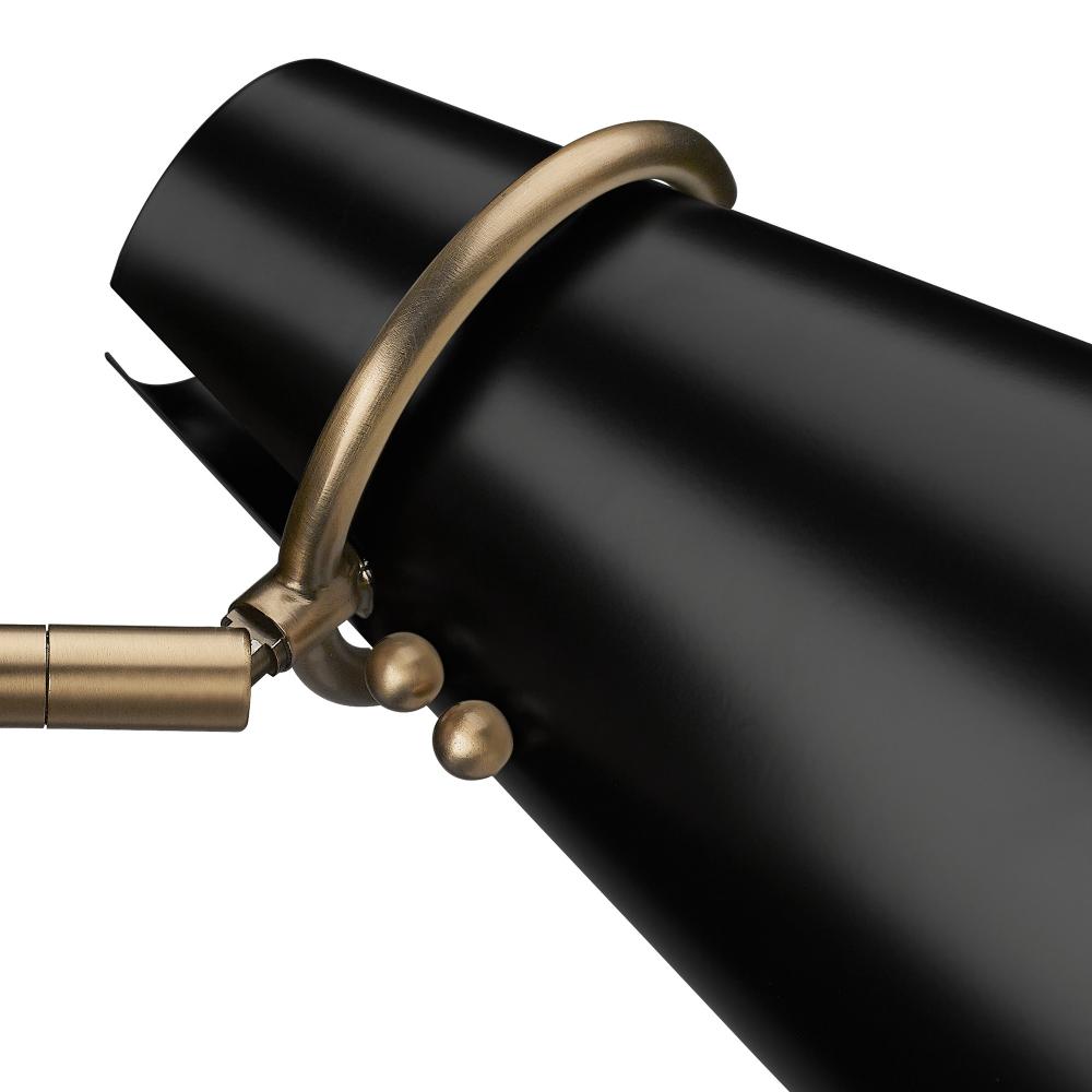 Bring retro-modern elegance into your home with the Golden Lighting Reeva 1-light Wall Sconce. Featuring a metal shade and a Modern Brass frame, it creates a welcoming atmosphere in any room. The metal shade has a classic Matte Black finish, offering a clean and sophisticated look that absorbs light, providing a soft glow ideal for cozy spaces. Our Modern Brass finish is the epitome of understated elegance. This sophisticated finish moves beyond traditional brass tones, adding warmth to your decor with a rich, muted hue that's timeless and versatile. Perfect for enhancing hallways, stairways, or cozy ambiance in bedrooms and dining rooms, this wall sconce is damp location rated, suitable for covered and semi-enclosed spaces like bathrooms or laundry rooms. The adjustable directional heads allow you to customize the lighting to highlight specific areas or objects by pivoting the individual heads. Overall dimensions are 5.13"W x 8.5"H x 8.13"D, and it requires 1 E26 Medium base bulb (not included) with a max wattage of 100. Elevate your interior with this quality fixture that embodies both style and functionality.