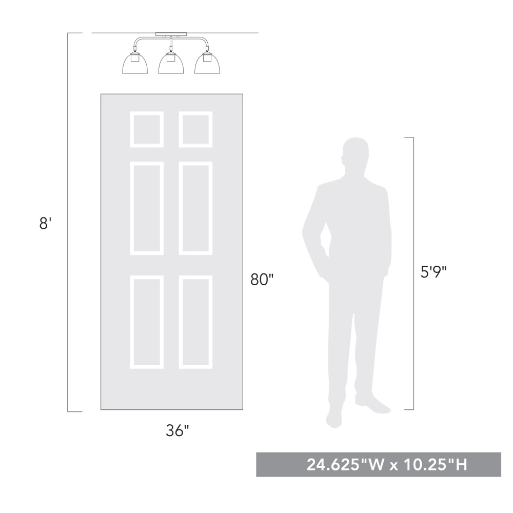 Bring timeless elegance into your home with the Golden Lighting Roxie 3-light Semi-Flush Mount in Matte Black. Featuring a glass shade and a matte black frame, it creates a welcoming atmosphere. The clear glass shade offers brilliant, unobstructed light. The perfectly transparent glass is polished to a high-gloss shine, allowing the beauty of the bulbs and design to take center stage. Its matte black finish is both timeless and versatile, providing a smooth, sophisticated look that complements any decor. This fixture is suitable for covered and semi-enclosed spaces with occasional moisture, making it perfect for entryways, kitchens, and living areas with mid-height ceilings. Adjustable directional heads allow you to customize the lighting to highlight specific areas or objects. Dimensions: 24.63"W x 10.25"H x 7.75"D. Requires 3 E26 Medium base bulbs (not included) with a maximum wattage of 100 per bulb. Elevate your space with the perfect fusion of design and functionality, embodying quality lighting solutions for modern living.