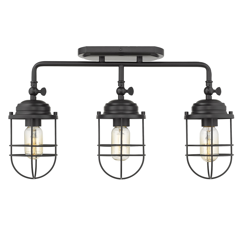 Bring coastal elegance into your home with the Golden Lighting Seaport 3-light Vanity in Matte Black. Featuring a metal shade and a matte black frame, it creates a welcoming atmosphere. The metal shade offers a timeless look while the matte black finish enhances sophistication, perfect for modern and traditional decors alike. This clean style provides a sense of calm and chic charm to any room. Brighten up bathrooms with dedicated lighting that flatters while providing practical task illumination. Damp Location Rated, it is suitable for covered and semi-enclosed spaces with occasional moisture, like bathrooms and laundry rooms. Its sloped ceiling compatibility allows for easy and safe installation on angled ceilings. Overall Dimensions: 21.13"W x 10.38"H x 6.25"D. Requires 3 E26 Medium base bulbs (not included) with a maximum wattage of 60 per bulb. Elevate your lighting experience with a fixture that beautifully balances style and practicality.