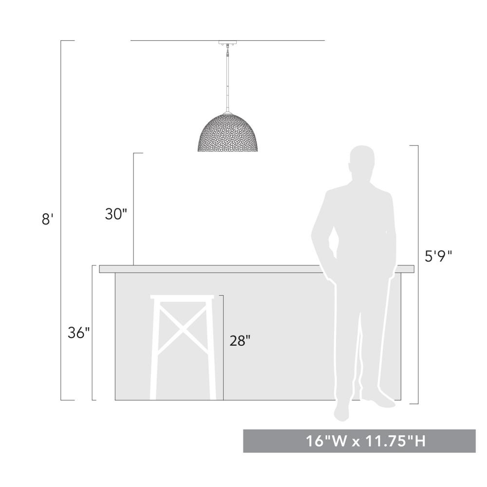 Bring traditional elegance into your home with the Golden Lighting Shepard 1-light Pendant. Featuring a metal shade and a Modern Brass frame, it creates a welcoming atmosphere. This pendant light showcases a sophisticated hammered metal finish that beautifully diffuses light, evoking a sense of cozy, country living. The Modern Brass finish is an epitome of understated elegance, offering a softer, muted hue that brings a touch of warmth to any space. Perfect for entryways, foyers, and bathrooms, this light is suitable for covered and semi-enclosed spaces with occasional moisture. Installation is a breeze with its sloped-ceiling compatibility and adjustable height from 15.875" to 57.875". The overall dimensions measure 16"W x 11.75"H x 16"D and it requires one E26 medium base bulb (not included) with a maximum wattage of 100. Infuse your home with a timeless design and quality that deserves compliments.