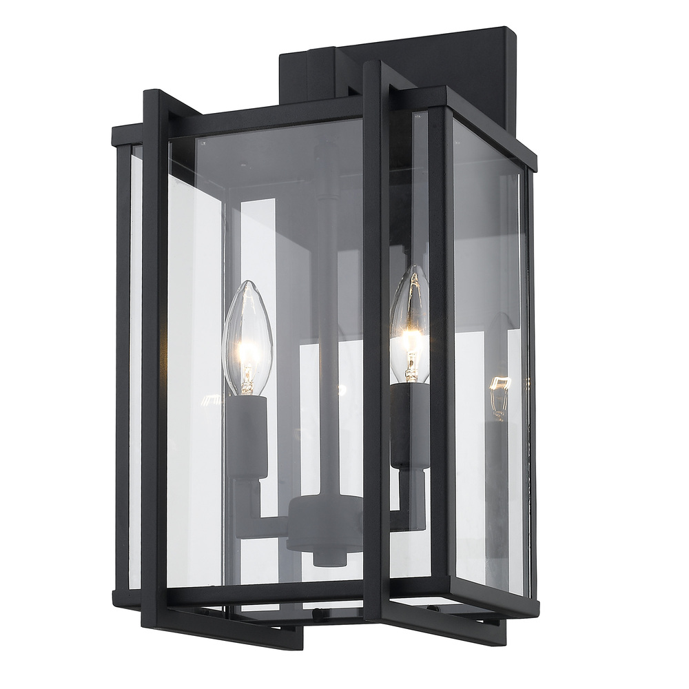 Experience exceptional style with the Golden Lighting Tribeca 2-light Outdoor Wall. Featuring a glass shade and a Natural Black frame, this fixture yields a charming and inviting ambiance. The clear glass shade delivers unobstructed light, polished for a sleek appearance, ensuring that it stands out as a centerpiece in any space. The Natural Black finish offers a softer look that fits seamlessly in various decor styles. This outdoor wall light is ideal for entryways, patios, and garage doors, combining both safety and curb appeal. Wet Location Rated to withstand the elements, this fixture guarantees longevity and performance. Overall Dimensions: 8.5"W x 15.75"H x 8.5"D, Requires 2 E12 Candelabra base bulbs (not included), max wattage 60. Elevate your outdoor aesthetics with timeless elegance and quality craftsmanship.