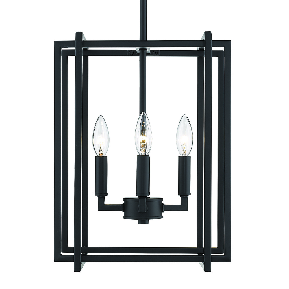 Bring clean, modern elegance into your home with the Golden Lighting Tribeca 4-light Pendant. Featuring a matte black finish, it creates a welcoming atmosphere in kitchens, dining rooms, or bedrooms. This versatile design showcases a sleek geometric frame that blends seamlessly into any decor style while offering focused yet decorative illumination in entryways, foyers, and even bathrooms. The matte black finish is timeless and versatile, providing a sophisticated, understated elegance that enhances your space. Dry Location Rated: Ideal for indoor areas not subject to moisture. Easily install this pendant on angled ceilings with its adjustable height feature, ranging from a minimum of 18.875" to a maximum of 60.875". Overall Dimensions: 12"W x 16"H x 12"D. Requires 4 E12 Candelabra base bulbs (not included), with a maximum wattage of 60 per bulb. Elevate your lighting with the quality craftsmanship of Golden Lighting and transform your home into a stylish sanctuary.
