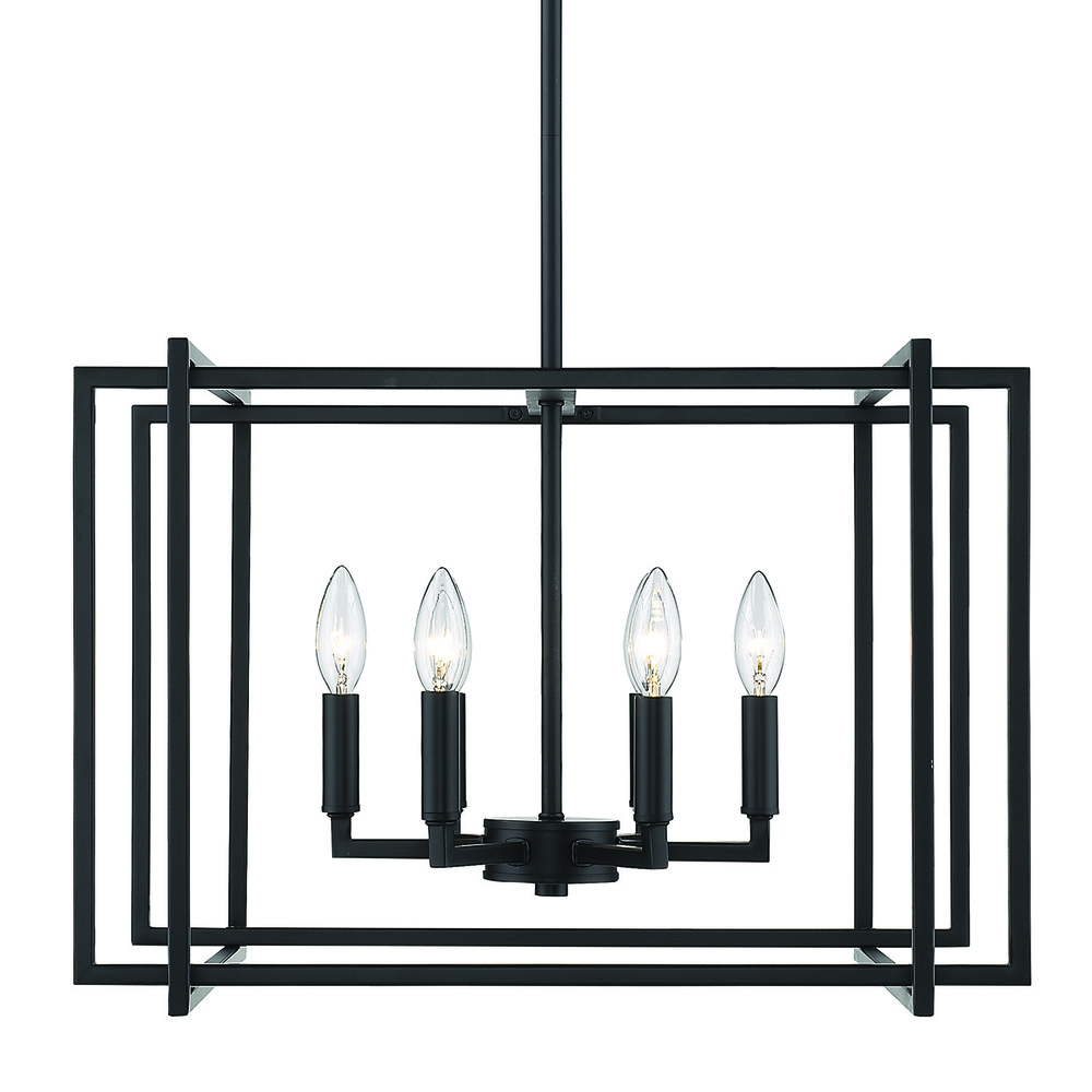 Make a grand impression in your home with the Golden Lighting Tribeca 6-light Chandelier in Matte Black. This chandelier brings a touch of modern elegance, featuring a striking matte black finish that creates an inviting atmosphere in dining rooms, foyers, or bedrooms. The geometric design combined with the classic silhouettes allows the chandelier to seamlessly integrate into any decor style while enhancing the ambiance of your space. The matte black finish is designed to absorb light, creating a soft, sophisticated glow that elevates your interiors. Dry Location Rated for indoor areas not subject to moisture, it’s easy to install this chandelier on angled ceilings, with an adjustable height feature spanning from a minimum of 17.375" to a maximum of 59.375". Overall Dimensions: 21"W x 14.5"H x 21"D. Requires 6 E12 Candelabra base bulbs (not included), with a maximum wattage of 60 per bulb. Embrace the allure of quality craftsmanship from Golden Lighting and transform your home's lighting with this statement piece.
