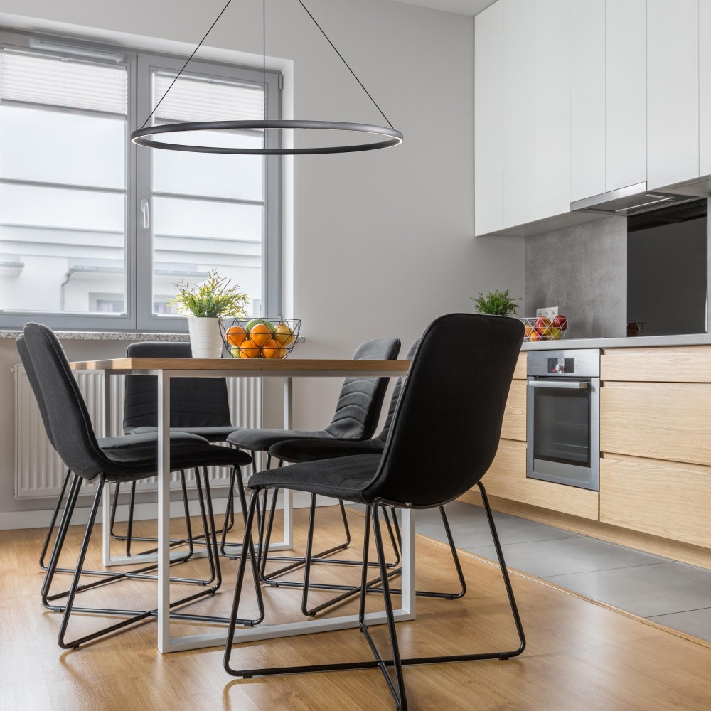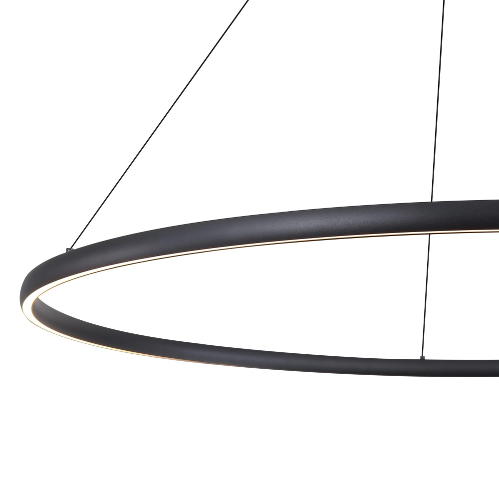 Bring chic sophistication into your home with the Golden Lighting Veritas Integrated LED 47in Chandelier in Sand Black. This minimalist design features a robust Sand Black finish that exudes a high-end aesthetic without being reflective. Utilizing the power of integrated LED technology, this chandelier casts a warm 3000K glow with brilliant energy efficiency. The non-reflective matte surface with a sandy texture offers visual interest while absorbing light gracefully. Make a grand impression in dining rooms and foyers, as this chandelier is dry location rated, making it perfect for indoor spaces, including bedrooms and hallways. Installation is straightforward with sloped-ceiling compatibility and an adjustable height ranging from 30" to 123". Dimensions: Overall Dimensions: 47.25"W x 1.13"H x 47.25"D. With integrated LED technology providing 5400 lumens, this chandelier marries function with elegant style. Transform your home environment with quality craftsmanship and striking design in this captivating chandelier.