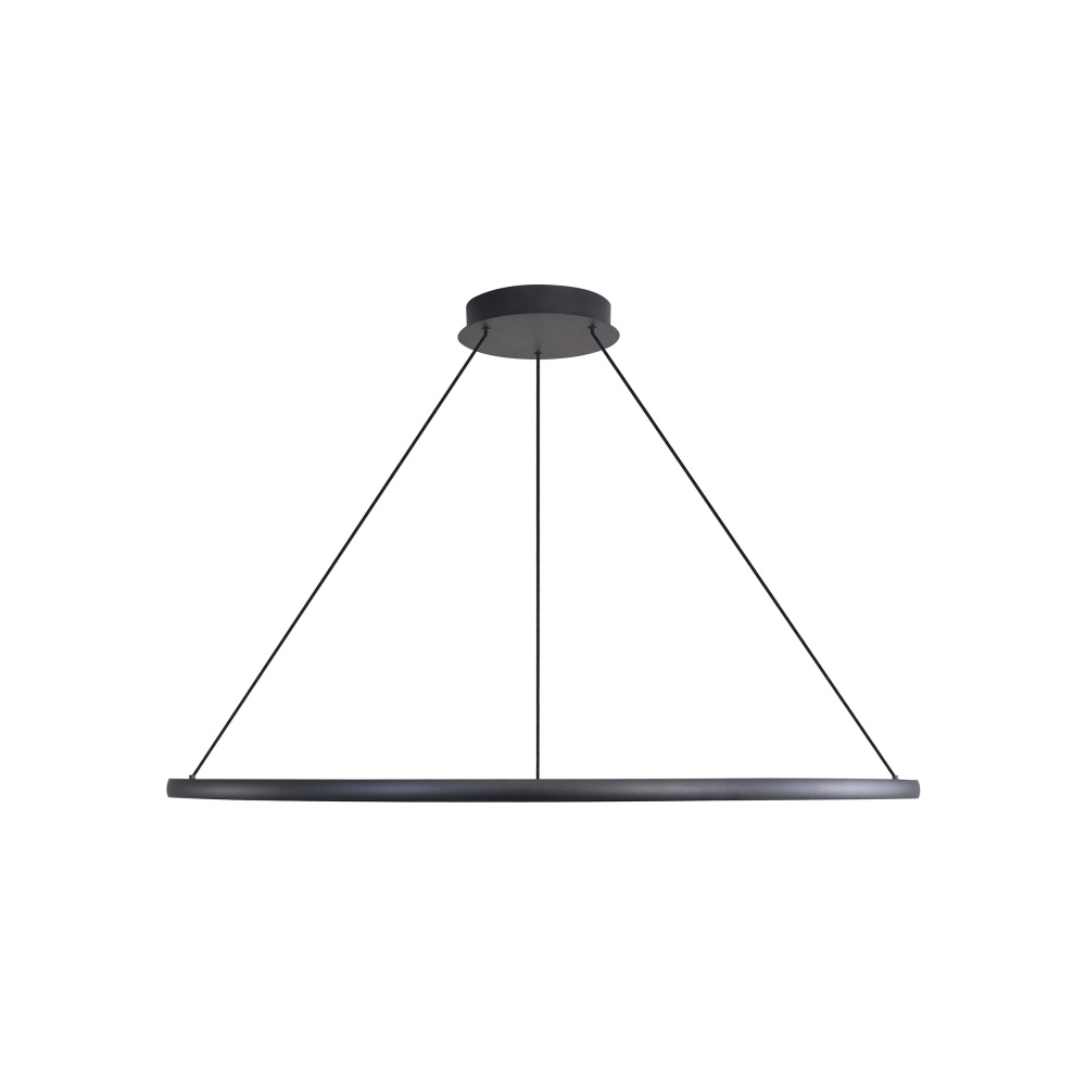 Bring modern elegance into your home with the Golden Lighting Veritas Integrated LED 59in Chandelier. Featuring a sleek design without any shade, this chandelier has a Sand Black finish that creates a bold statement in any room. This striking finish features a deep black hue with a non-reflective matte surface and a sandy texture, offering both visual interest and a touch that feels luxurious. Make a grand impression in dining rooms, foyers, or elevate bedrooms and living spaces with this stunning fixture, ideal for dry indoor spaces such as living rooms and hallways. Easily install it on sloped ceilings, and customize the hanging length to your desired height (30"-123"). Overall dimensions measure 59"W x 1.13"H x 59"D. Equipped with integrated LED technology, this chandelier provides 6525 lumens at a warm 3000K color temperature for an inviting atmosphere. Experience quality and sophistication with the Golden Lighting Veritas Chandelier.