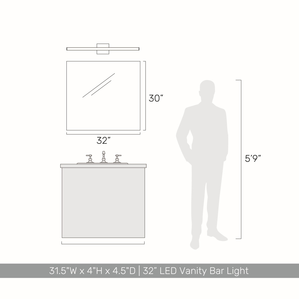 Bring modern elegance into your home with the Golden Lighting Vireo Integrated LED 32in Vanity in Walnut. This sleek fixture creates a welcoming atmosphere without the distraction of an accompanying shade. The Walnut finish captures the rich warmth of classic wood, making it perfect for contemporary designs. Without a traditional shade, the integrated LED technology casts a balanced, ambient glow that enhances your space effectively. The beautiful medium-brown walnut grain pattern serves as an organic touch in any setting, providing a sophisticated glow. Designed for versatility, this fixture is perfect for damp locations, suitable for covered bathrooms and laundry rooms. It can be mounted either vertically or horizontally based on your design needs. Dimensions: Overall Dimensions: 31.75"W x 4"H x 4.5"D. Bulbs: Integrated LED technology offers a long-lasting, dimmable source providing 1080 rated lumens at a warm 3000K. Experience quality and style with this statement piece that complements a broad range of interiors.