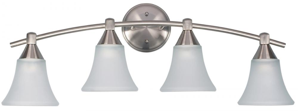 The Grace 4 Light Vanity, Pewter Finish captures the spirit of art deco flair. A stunning piece that combines Brushed Pewter and User Replaceable Bulb to create an unforgettable ambiance.