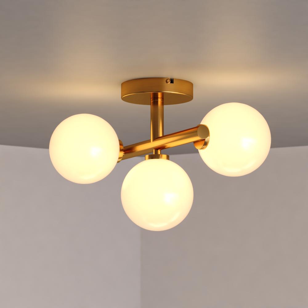 Elevate your foyer, office or bedroom with the Graham semi-flush mount ceiling light, a stylish and affordable way to add a touch of mid-century modern charm. Its unique globe design, reminiscent of a Sputnik, creates a warm and inviting ambiance. The harvest gold finish adds a touch of sophistication, perfectly complementing a range of decor styles. Easy to install, it’s the perfect weekend DIY project to upgrade your space.