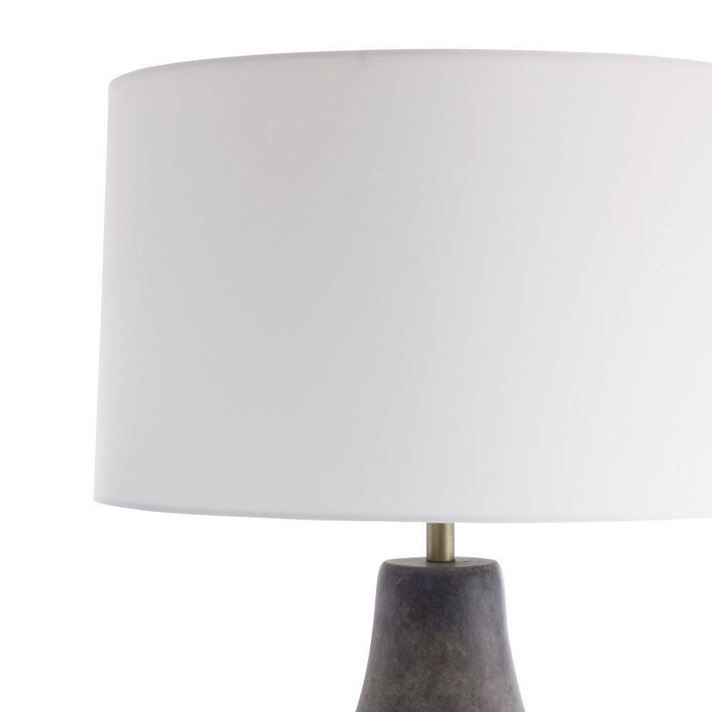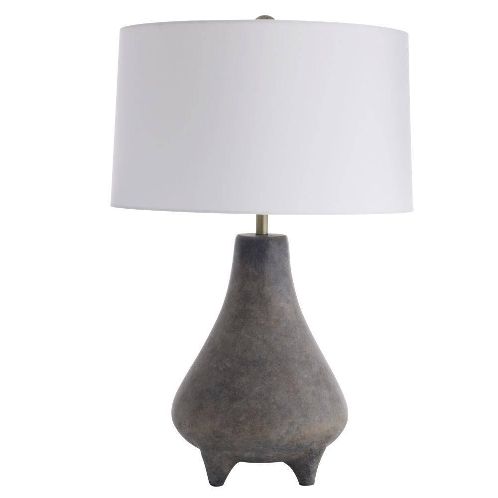 The quirky silhouette of our terracotta lamp gives the illusion of a fanciful animal. Oversized in scale and finished with a textural rhino glaze, it makes an impactful accessory for a living space or bedroom. Topped with an off-white microfiber drum shade in off-white cotton. Antique brass-plated steel hardware and matching finial. Finish will vary.