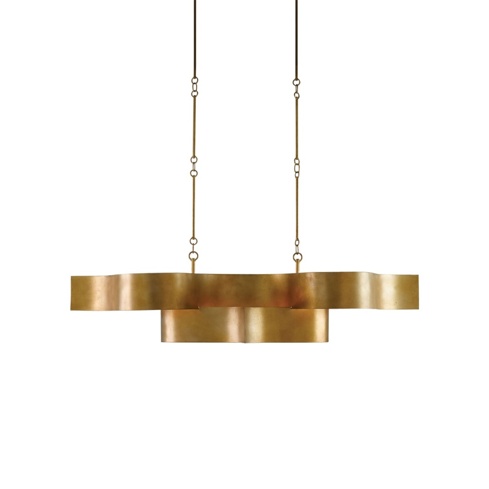 Undulations of luxurious amber-hued metal treated to an antique gold leaf finish form the flowering silhouette of the Grand Lotus Oval Chandelier. This is a stylized version of the other designs in this collection, each of which is skillfully fashioned from sheets of wrought iron. The stunning workmanship and complex design of this gorgeous interpretation of the blossom upon which Asian deities are known to pose has an adjustable in its hanging height.