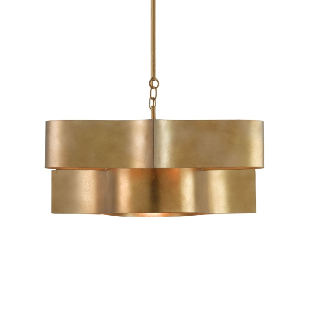 The Grand Lotus Gold Oval Chandelier receives its majestic good looks from a combination of stunning workmanship and its antique gold leaf finish. The gold chandelier is skillfully fashioned from sheets of wrought iron. This is one of a number of designs in a variety of finishes in this family of fixtures. Adjustable from 17" to 58" with use of included chain/rod kit/cable. If your space calls for a longer drop, additional chain/rods/cable is available for purchase.