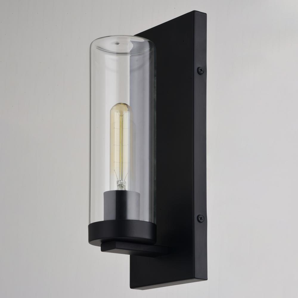 The Grantley collection is the perfect addition to your outdoor or indoor spaces. A long clear glass cylinder accentuates the clean, contemporary look of this collection. A metal disc in a striking matte black finish supports the glass cylinder showcasing a generous display of light. Add this wall mount light to any entryway, garage, hallway, or bath for that stylish touch.