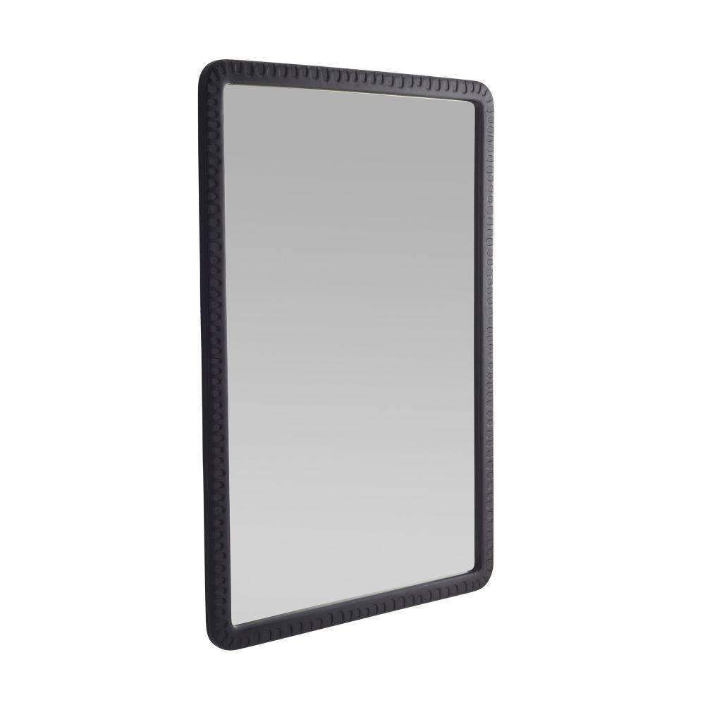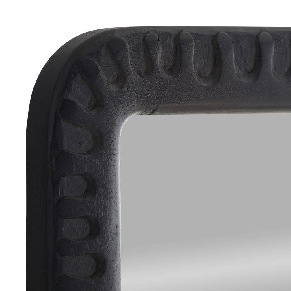 The rhythmic patterns of a vintage print lend an energetic texture to a frame of ebonized mango wood. This statement style was designed to catch the light in each subtle indentation. Can be hung both vertically and horizontally. Secured at the back with a cleat attachment.