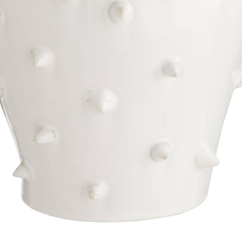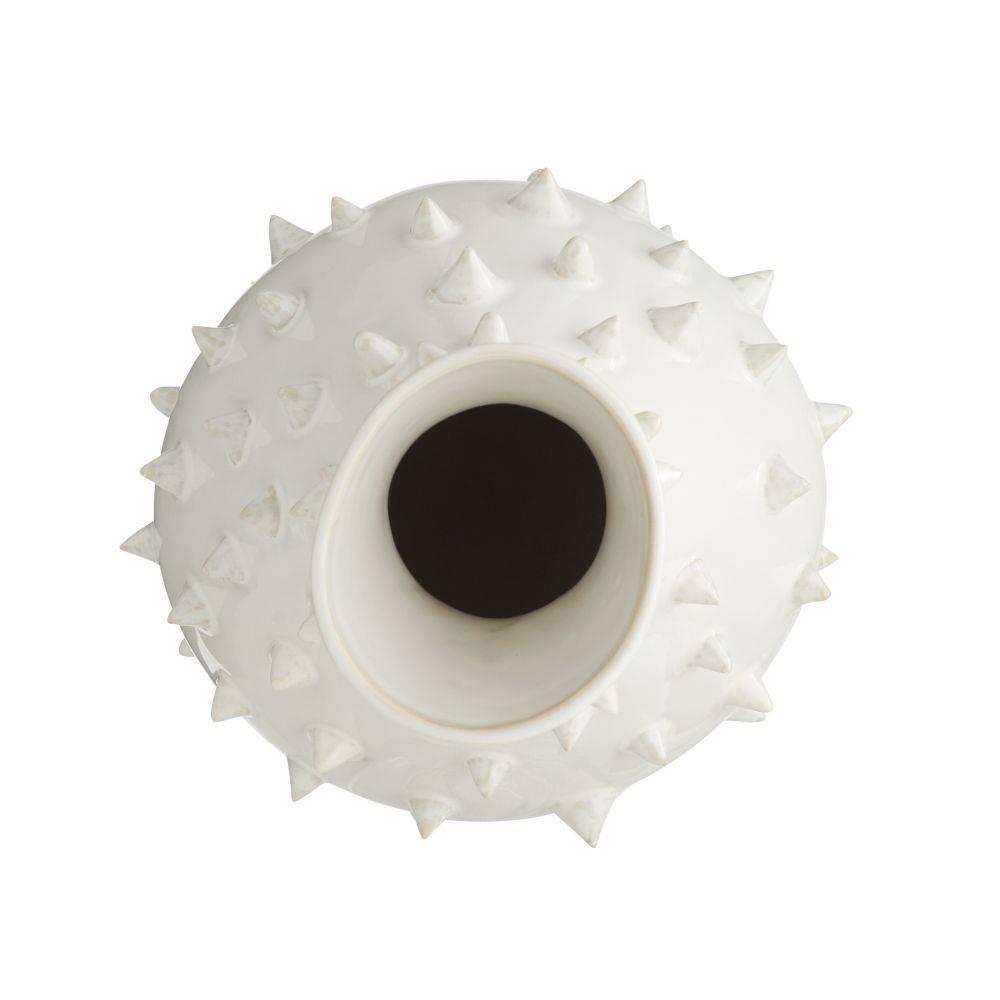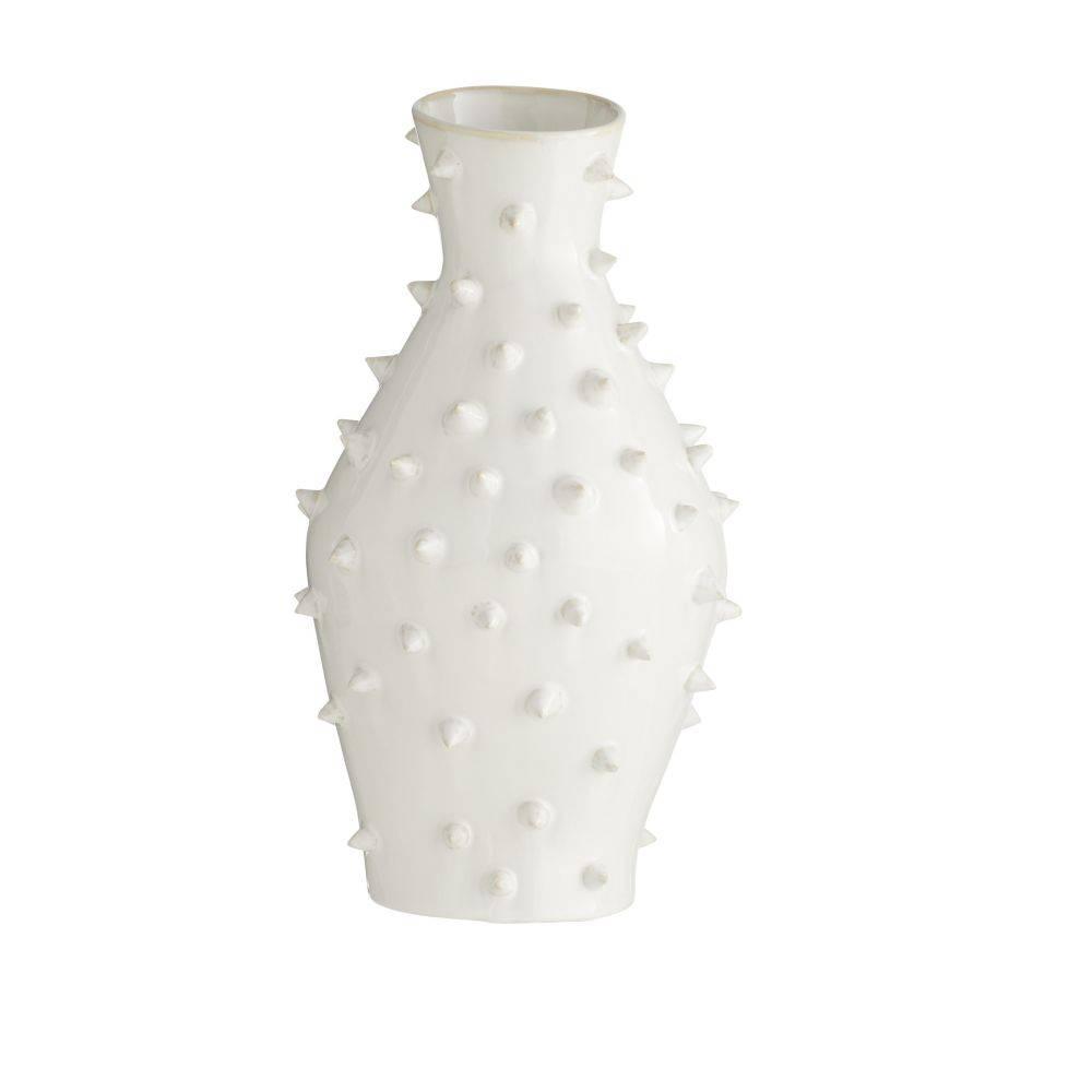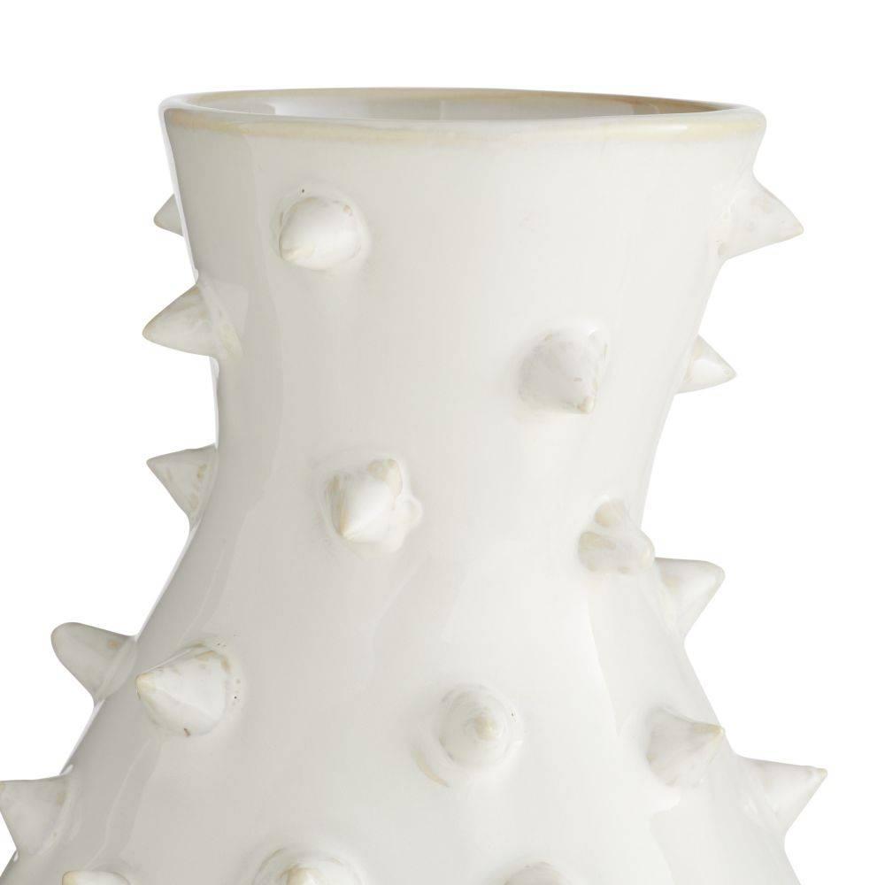 This ceramic vase's irregular shape and spiked surface recall a cactus. Glazed with an ivory crackle finish, it can be staged with the matching short Grenell vase or on its own. Finish will vary.