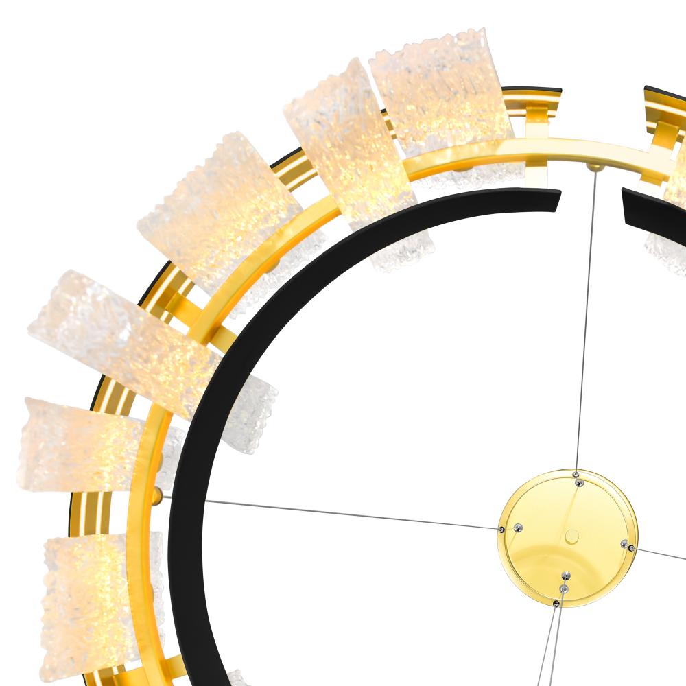 Make a bold statement with the Guadiana Modern LED Chandelier, blending black and satin gold finishes for a luxurious touch. Featuring integrated dimmable LEDs, this fixture delivers energy-efficient, ambient lighting ideal for dining rooms, living spaces, or grand entryways. With its suspended design, it becomes an eye-catching centerpiece that elevates any decor style.