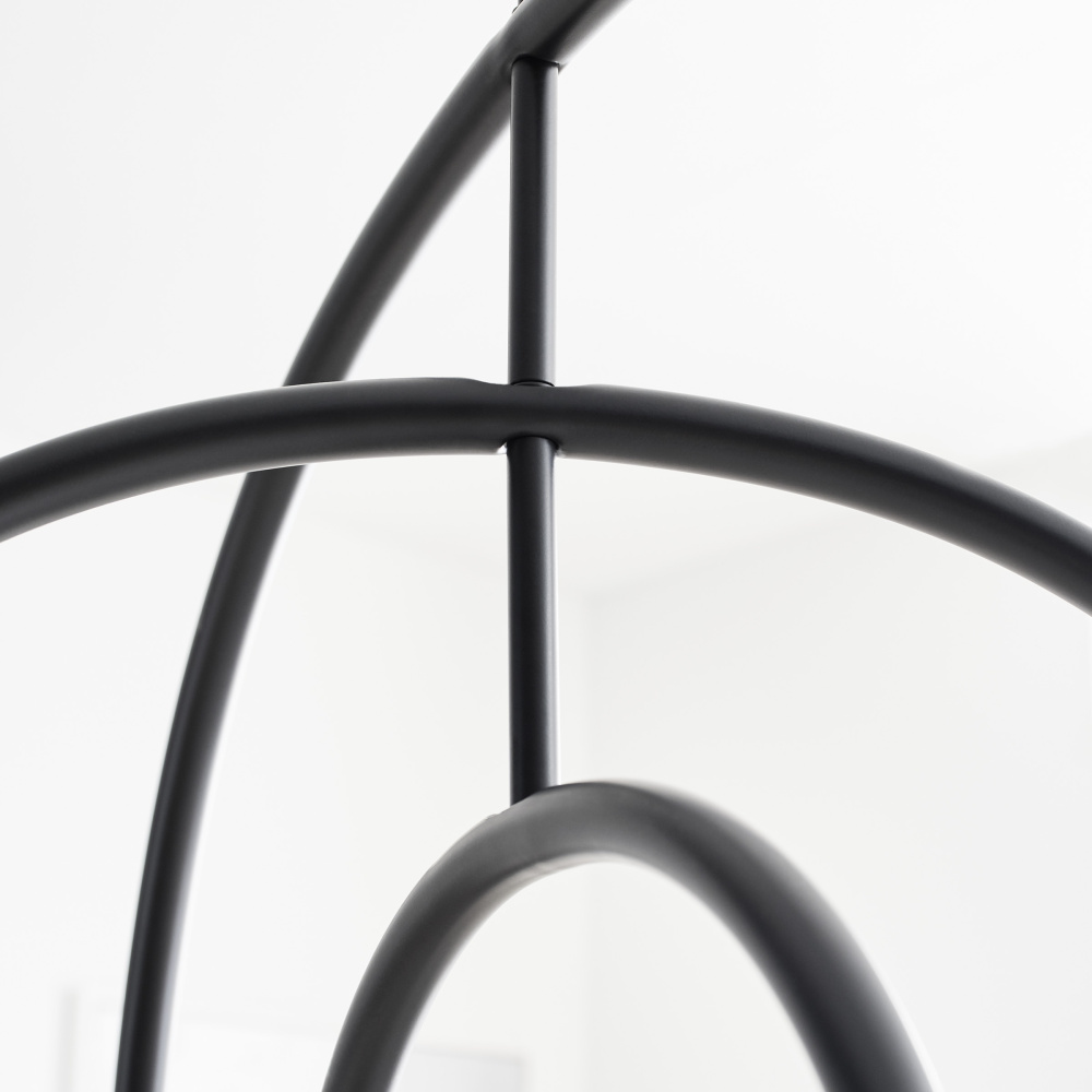 Add a modern statement with this unique chandelier. Hadden's mobile-like form allows you to adjust the arcing arms for an arrangement of your design. Playfully proportioned center hub and two finish options give this series plenty of elegant contrast.
