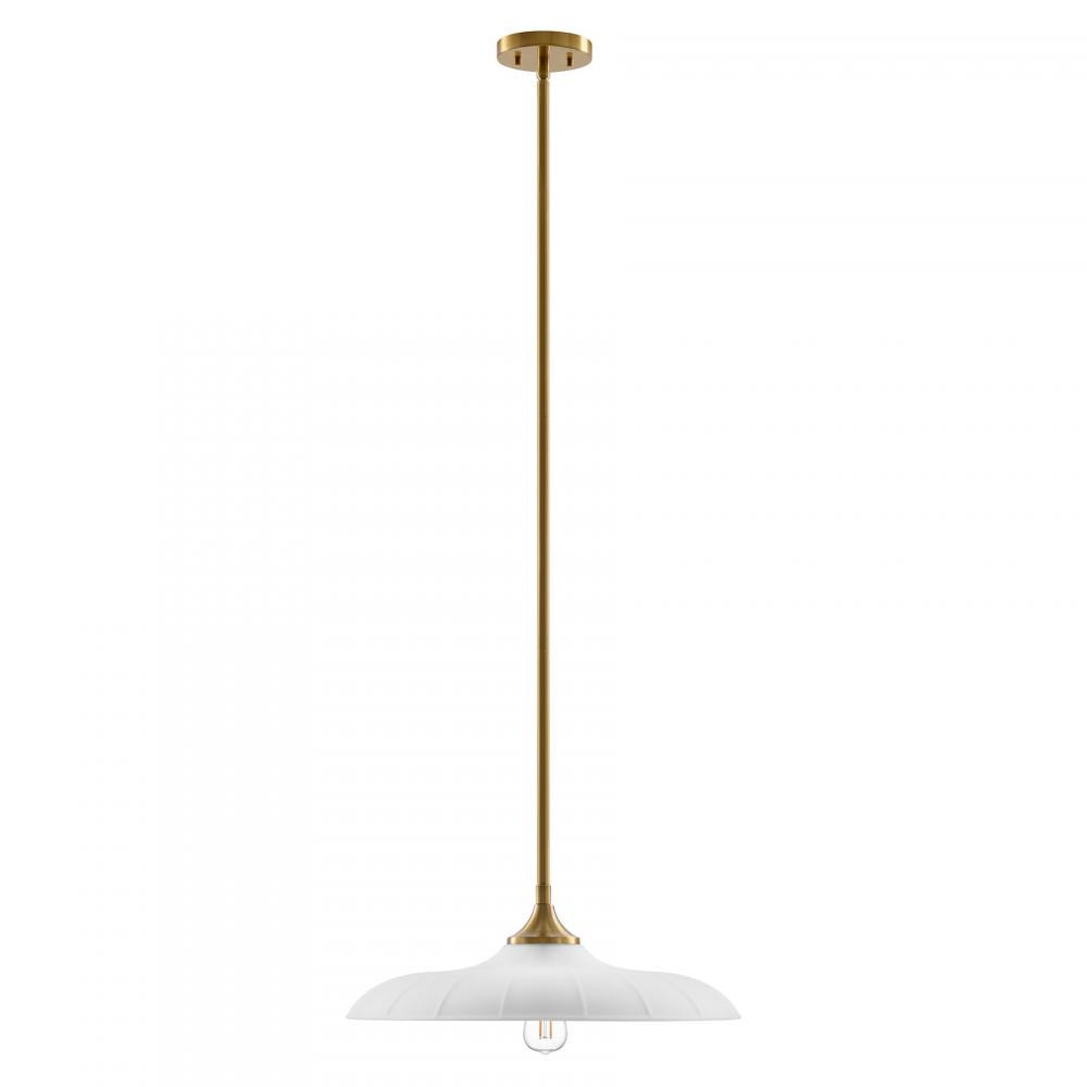 Welcome a look inspired by vintage workshop style with the Savoy House Hadley 1-light pendant. Its sleek, standout shade of subtly ribbed opal glass pairs beautifully with the Warm Brass finish. Use it solo or in groupings for a big boost of appeal! Hadley is 20" in width and has an adjustable height ranging from 6.63" to 60.63". It uses one standard size bulb of up to 60 watts. Bulb not included. Comes with four 12" downrods and one 6" downrod.