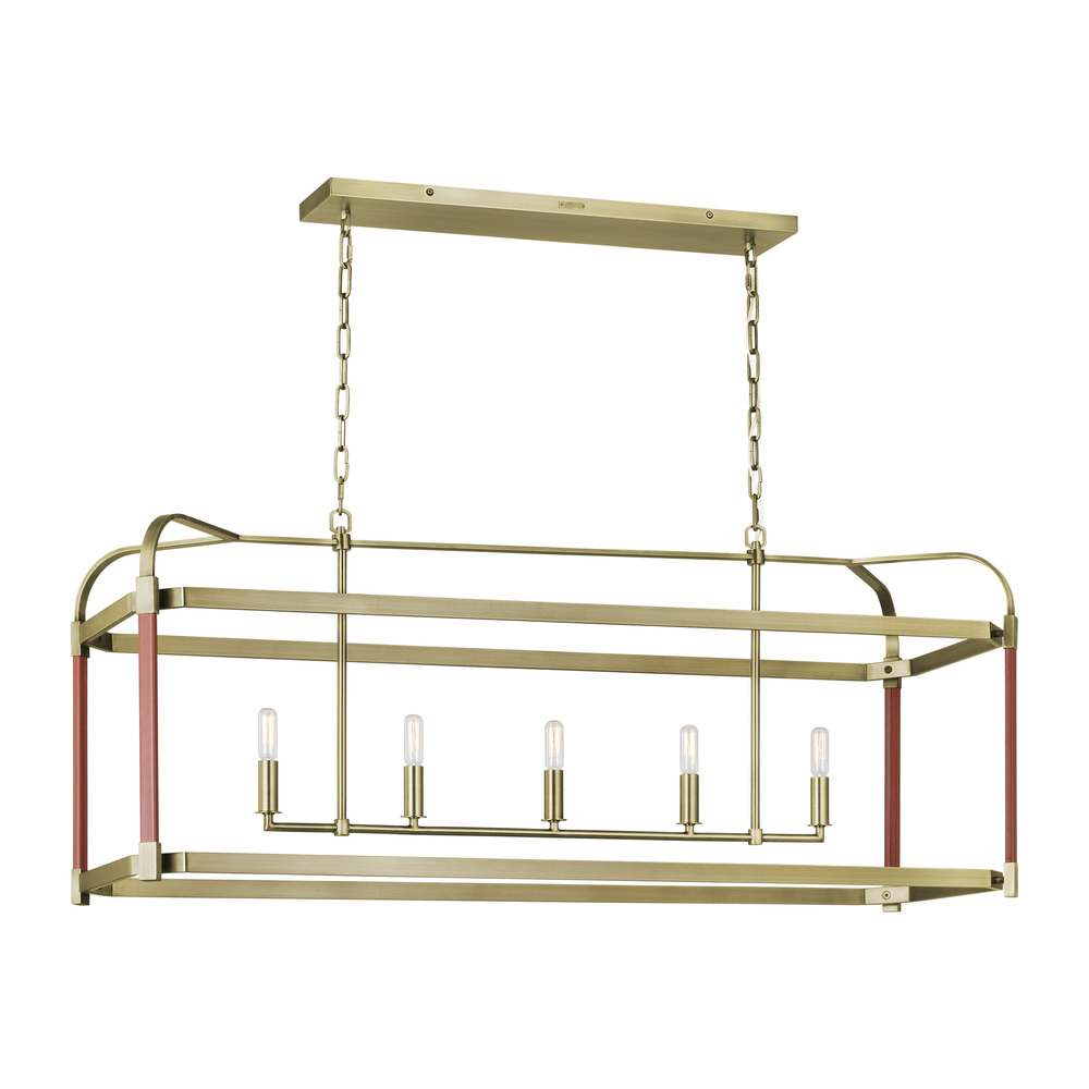 The Hadley linear chandelier by Lauren Ralph Lauren is a classic lantern with leather details. The combination of leather and steel gives this series equestrian flair. A truly transitional series that can be at home in any décor. Available in Polished Nickel or Time Worn Brass.