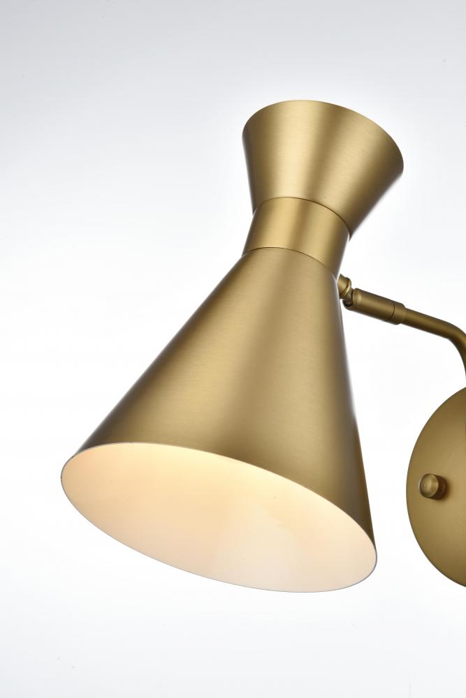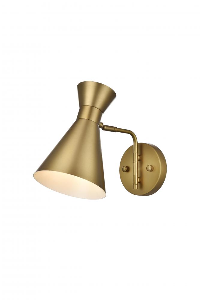 Illuminate your space with the brilliance of the Halycon Collection wall sconce. The cone dome creates a unique lighting and includes a dimmable feature that creates a calm mood. Available in a satin gold, chrome, black, and/or brass finish, this minimalistic piece will fit perfectly into your living room or bedroom. This product comes in a five or six inch length and requires one E26 socket. Light bulbs not included.