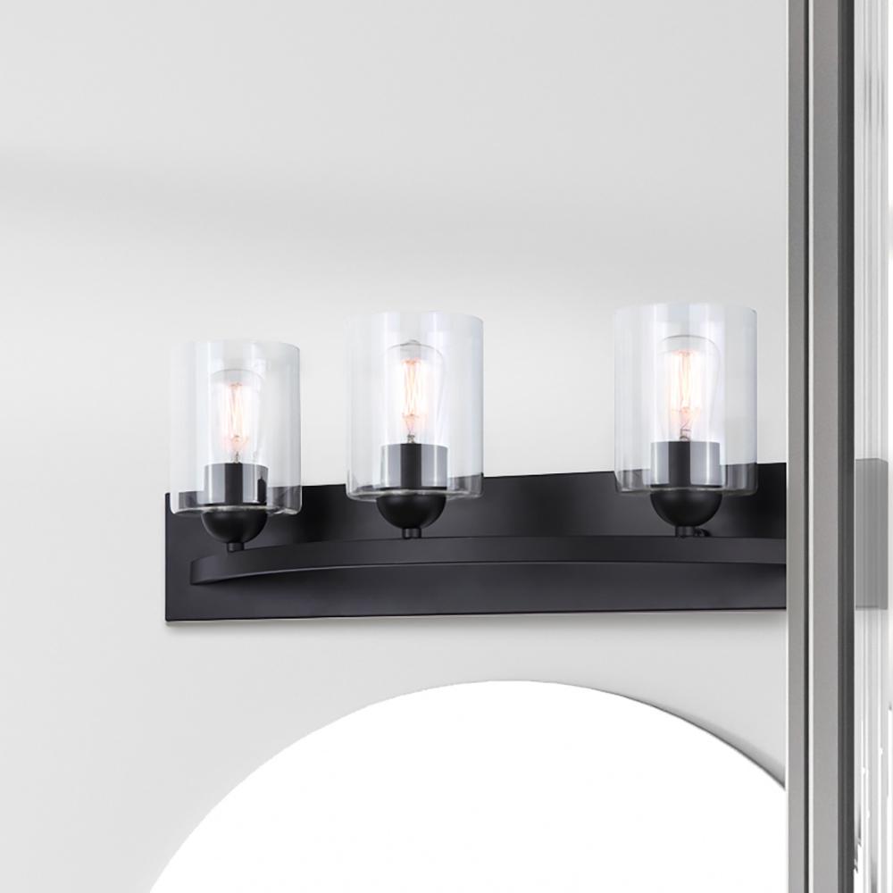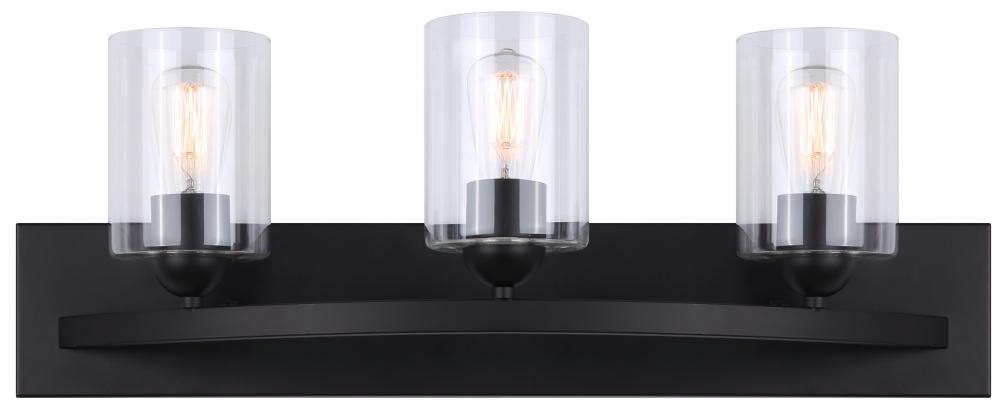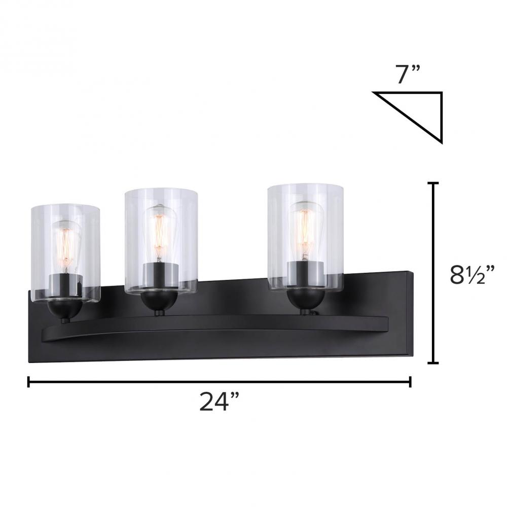 Hampton 3 Light Vanity, Black Finish