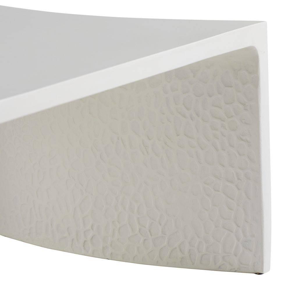 We refined Haney's bold silhouette with gently curved sides for added dimensionality. Cast of ivory concrete composite, this elegant cocktail table features dual inside panels textured to recall a coral reef, adding to the resonant form. Finish will vary.