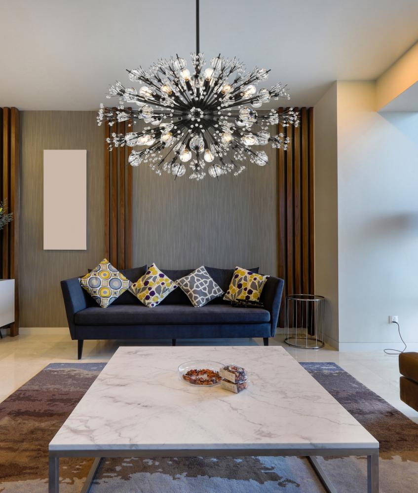 Features a striking sputnik-style shape with sparkling crystal accents for a luxurious modern touch.