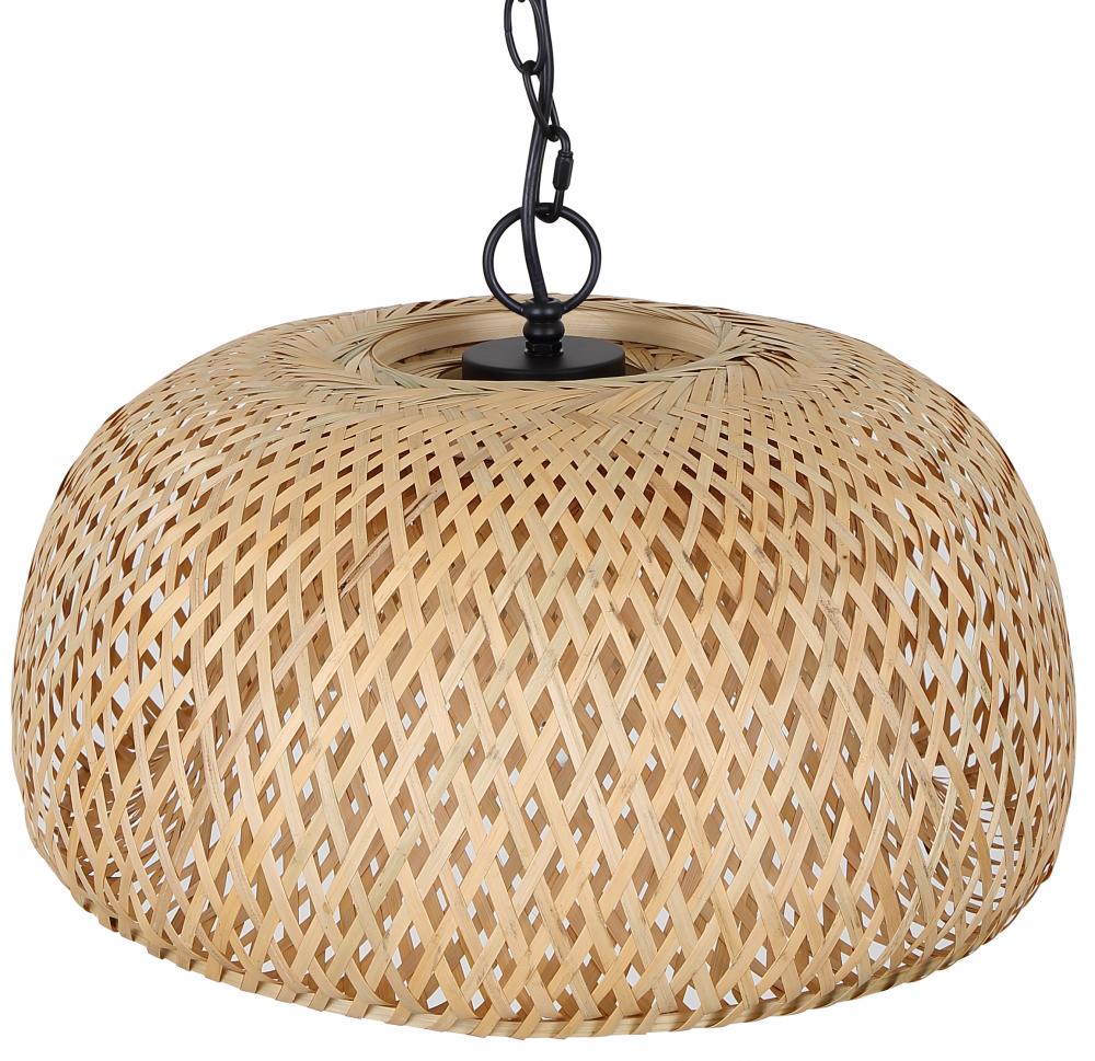 HANOI 60-Watt 1 Light Black Casual Pendant with Bamboo Bamboo Shade