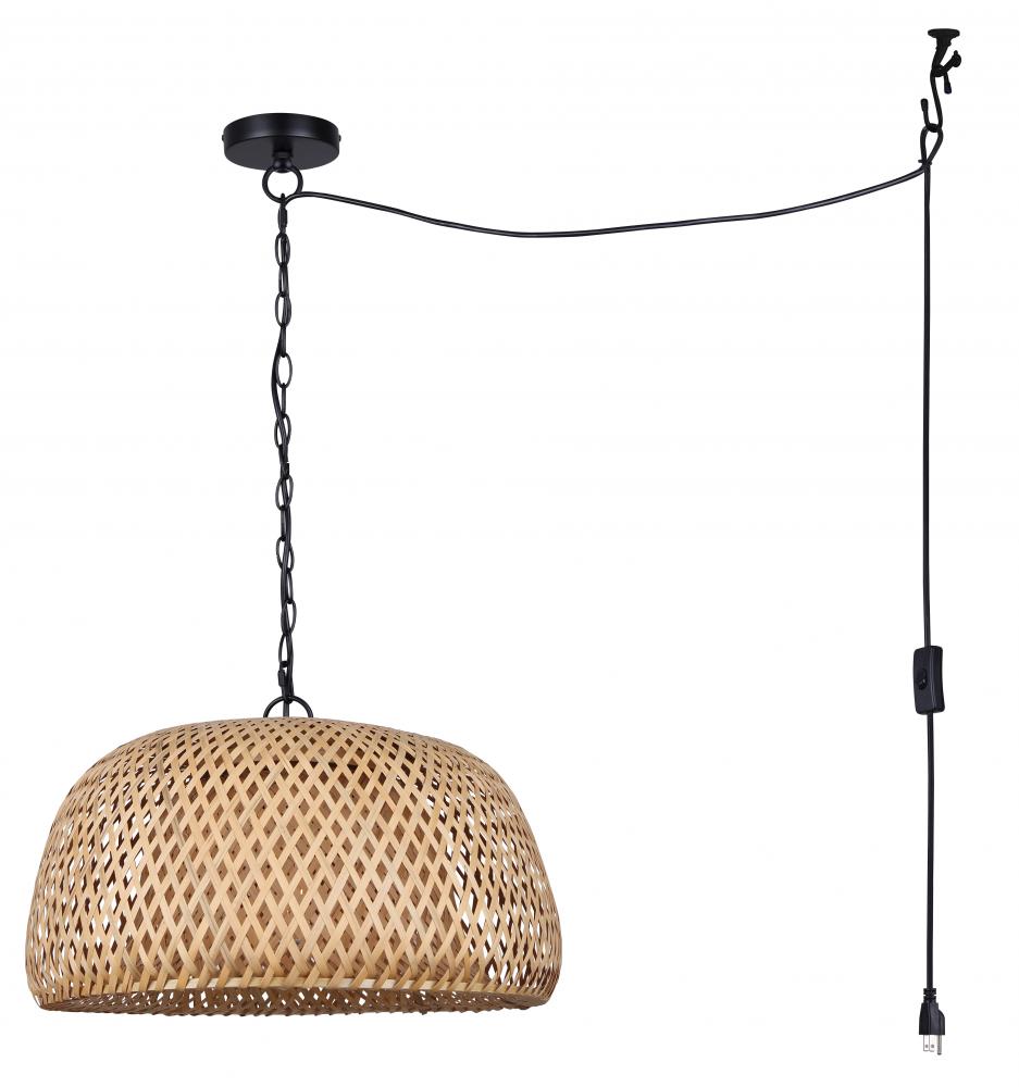 Add a touch of natural elegance to your interior with the HANOI Cord Pendant. Crafted from Bamboo and featuring a Matte Black color finish, this pendant light exudes organic charm and modern sophistication. The Flat Opal Glass shade diffuses soft and inviting light, creating a warm and welcoming atmosphere. With a maximum wattage of 60W (bulb not included), it provides ample illumination for various tasks and activities. The adjustable cord allows you to customize the height of the pendant to suit your space, ranging from 11 to 59 inches. Measuring 18 inches in width, it makes a stylish statement while offering practical lighting solutions for your home. The SWAG KIT and On-Off on the Cord features provide added convenience and flexibility in installation and operation.