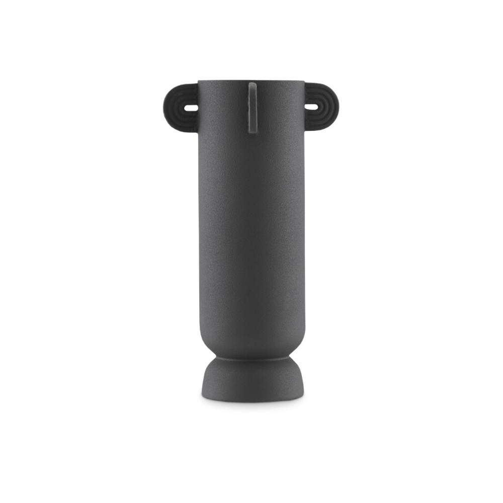Proving our artisanal prowess with materials is our Happy 40 collection, which includes our Happy 40 Tube Black Vase. Each of the ceramic bodies of the seven vases in this family, inspired by the "Art Decoratif" period, are hand thrown. with the designs that have handles, they require great skill to adjust to the sides of each vase symmetrically. The necks of these decorative vases are straight, which means they do not have a circular edge at the mouth to reinforce them during baking; and the texture is hard to obtain, which means they have to be fired at a special temperature.