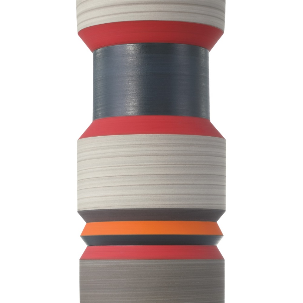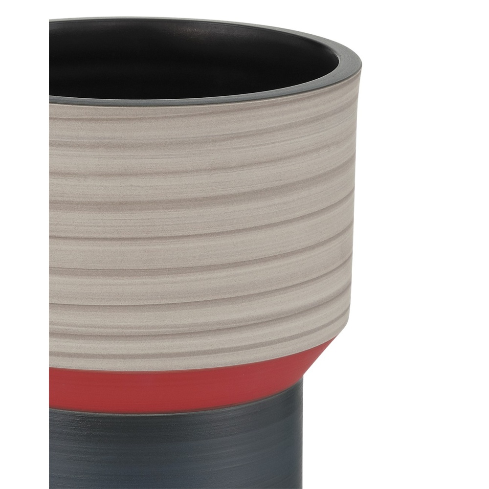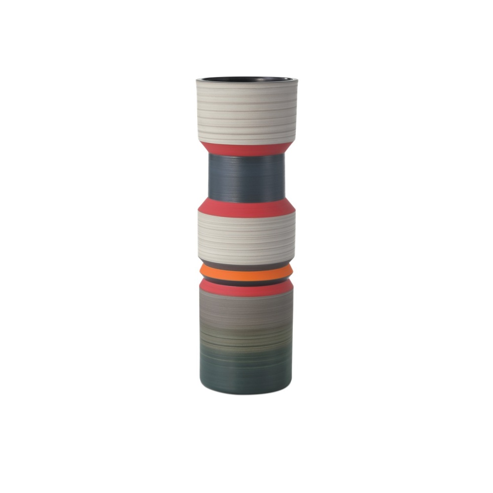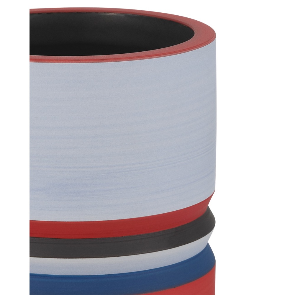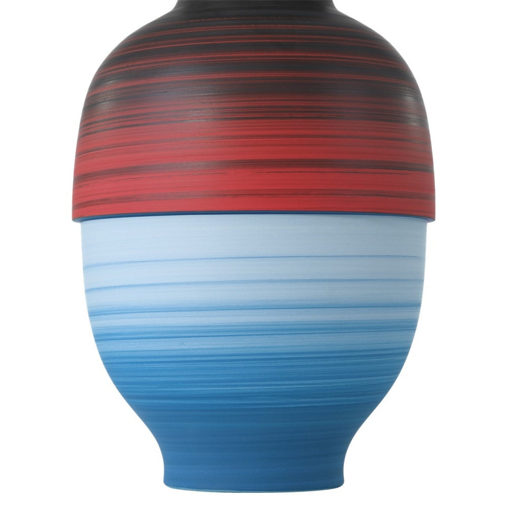 The Happy 80’s Black, Blue, Red & Orange Vase Set is a throwback to the decade when bold, vibrant, and eclectic ruled the stylistic spectrum—from interior design to fashion. Made of porcelain, the glazes on the exteriors of these vessels will vary because they are applied while the vases are spinning. This brings the two works of art a textural feel. The insides of the vases are covered in a black glaze, and the shapes of the vases reflect the nuances of the decade after which they are named.