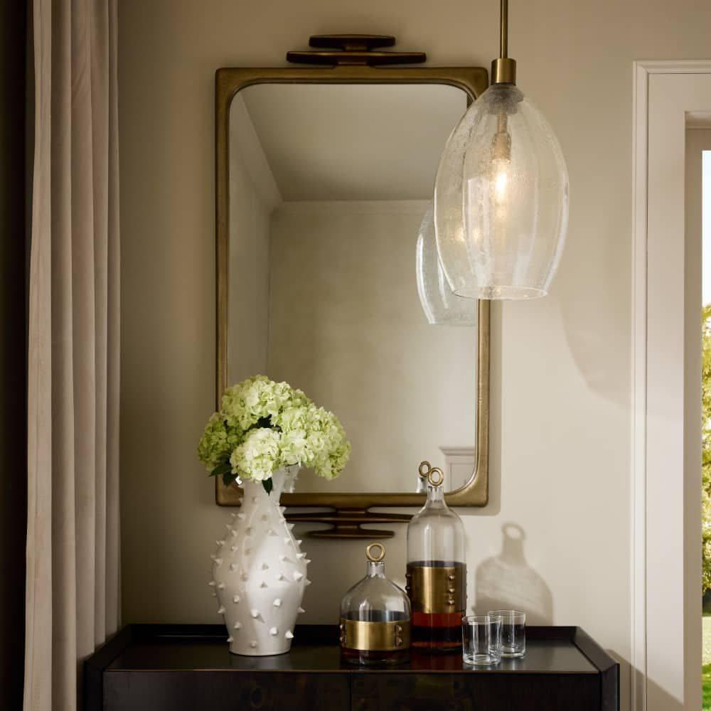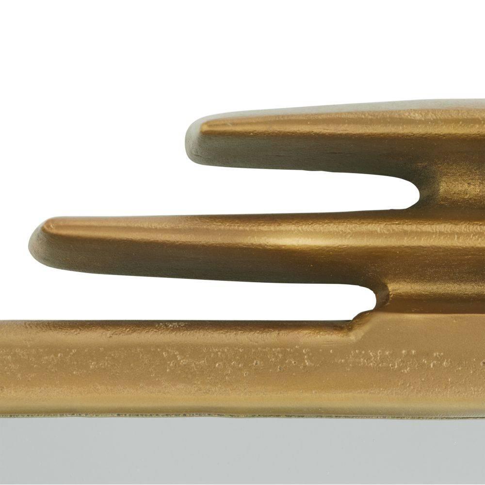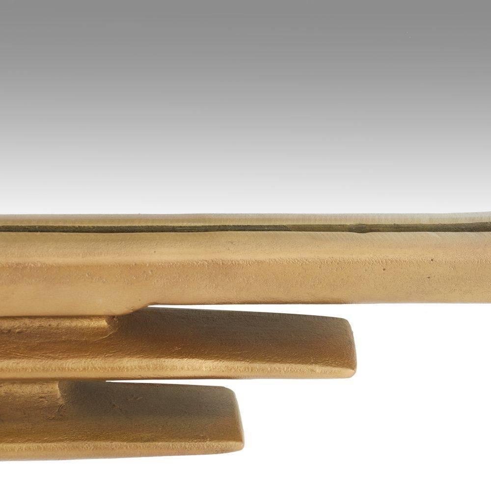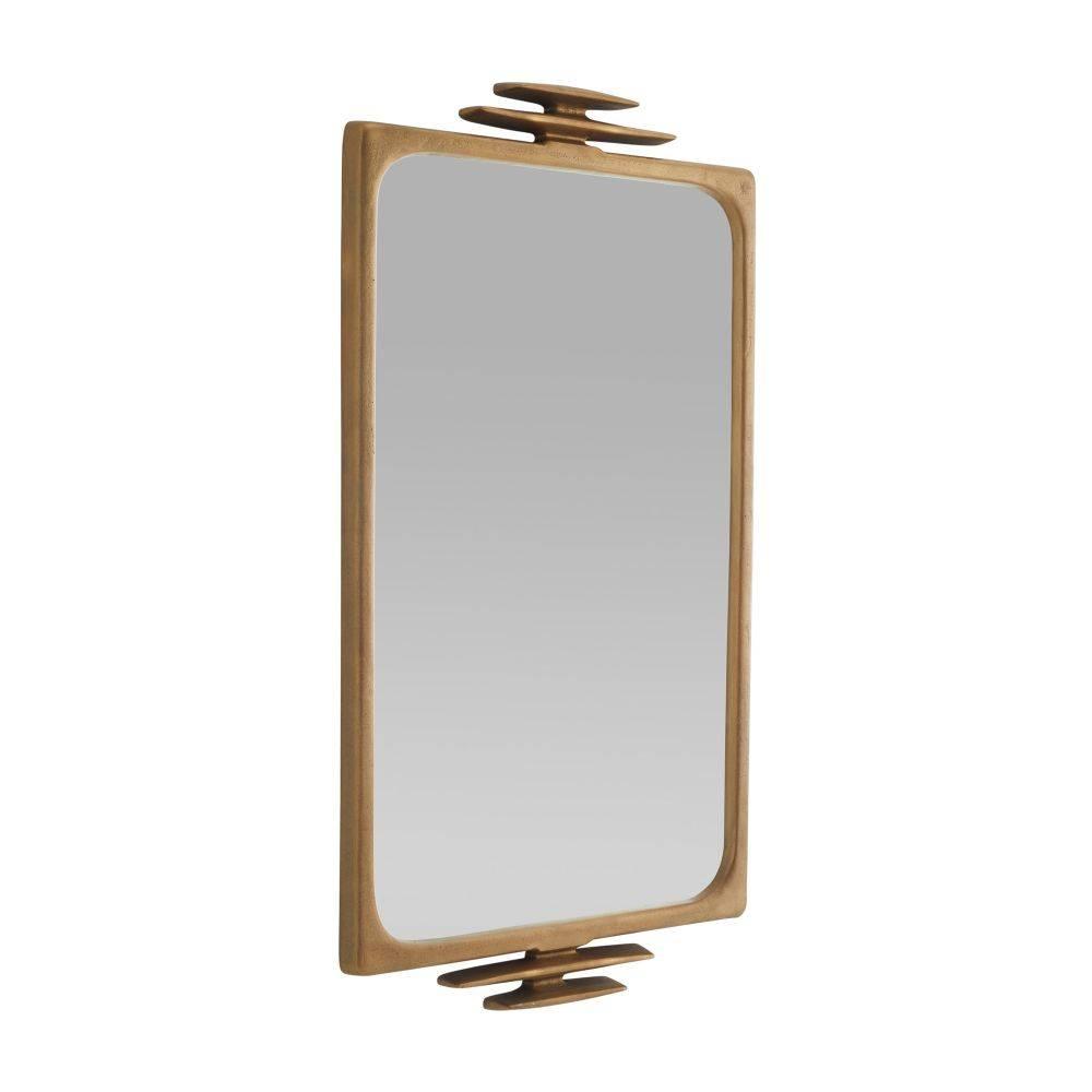 The Hardaway's rounded corners and glitch details span the decades, referencing both antique jewelry and space-age design. Cast of aluminum and plated with antique brass, it is finished with subtle pitting in the metal to highlight the authenticity of the materials. Scaled for a powder room, it can be hung both vertically and horizontally. Secured at the back with a cleat attachment.