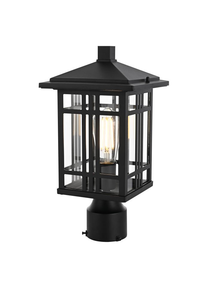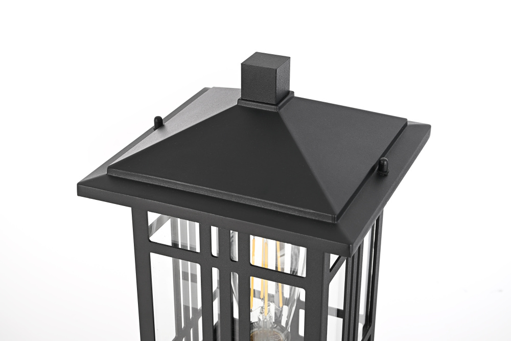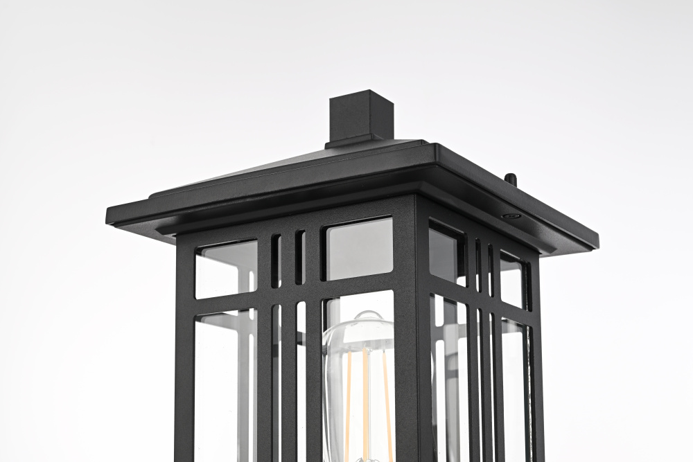 This post light structured rectangular frame with a decorative grid pattern, creating a defined, architectural presence for exterior spaces. Made from iron and aluminum, the durable black-finished frame ensures long-lasting performance. The black-finished iron and aluminum construction ensures durability, while the fully enclosed bottom design helps protect the bulb from dust and outdoor debris. The clear glass panels maximize illumination, making this fixture both practical and visually striking. Designed to fit most standard 3.23-inch post light poles (pole not included), this fixture is dimmable when paired with a compatible dimmer, offering adjustable brightness for different outdoor settings. ETL Wet Rated for outdoor durability, this structured and modern post light is a strong addition to driveways, pathways, and garden landscapes. Built with marine-grade, corrosion-resistant aluminum, this sconce withstands coastal conditions for long-lasting durability.