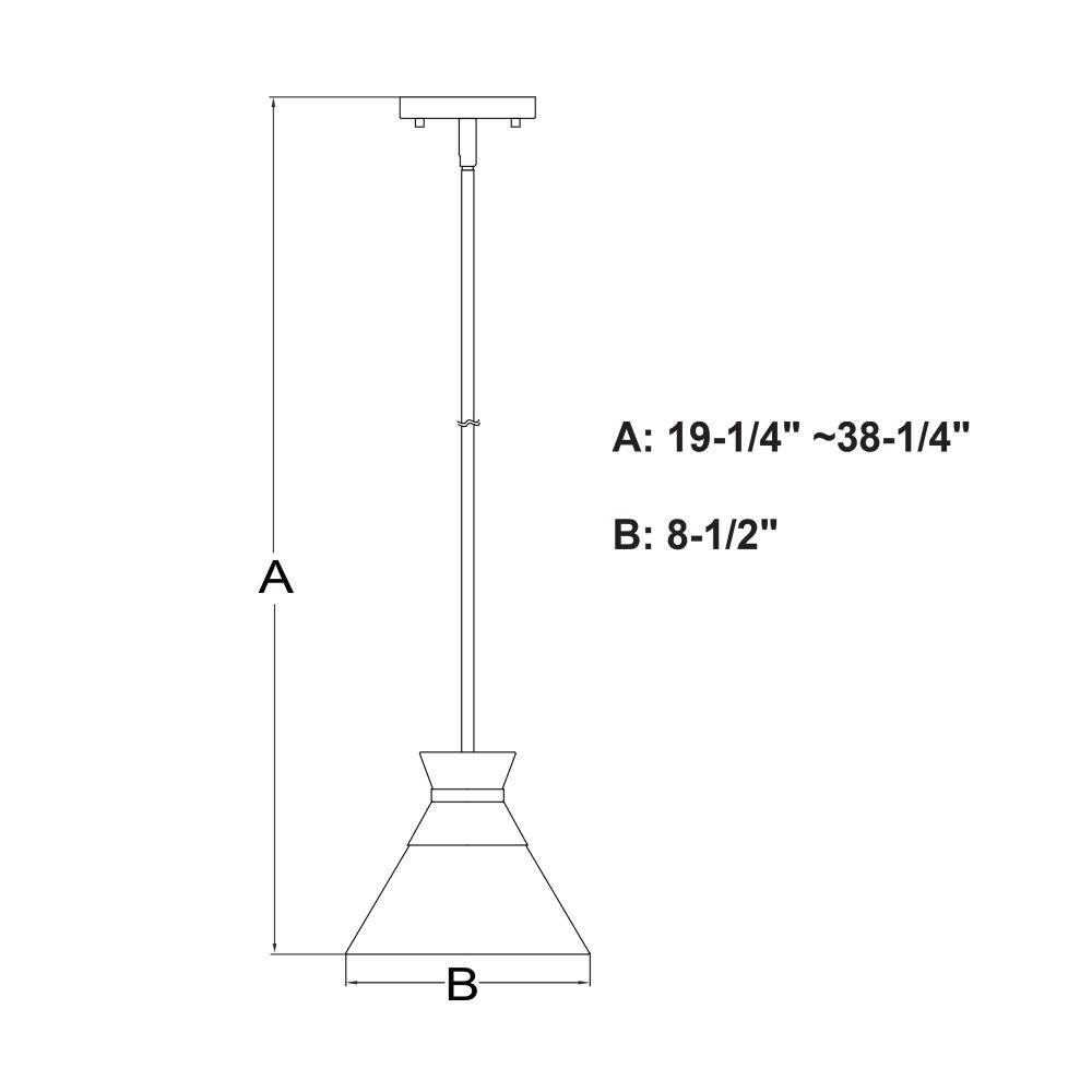 Adjustable height; 19.25-38.25 inches using 3 x 9.5-in of included down rods; sloped ceiling compatible