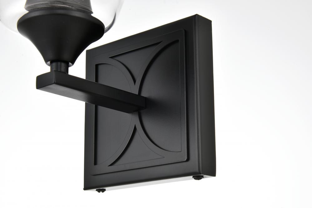 Defined by a sleek metal arm extends to suspend the clear tapered glass shade. A contemporary stunner, it shows off the straight line details from the backplate and the streamline thin metal arm. Compatible with dimmers, so you'll have the right amount of light in any given time of the day. Completely versatile, you can place this wall light as an uplight or downlight. Rated for use in damp locations, this will work perfectly over a vanity in your bathroom.