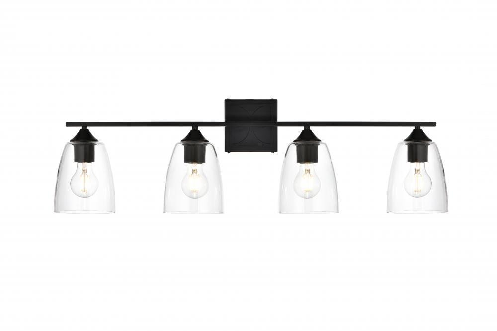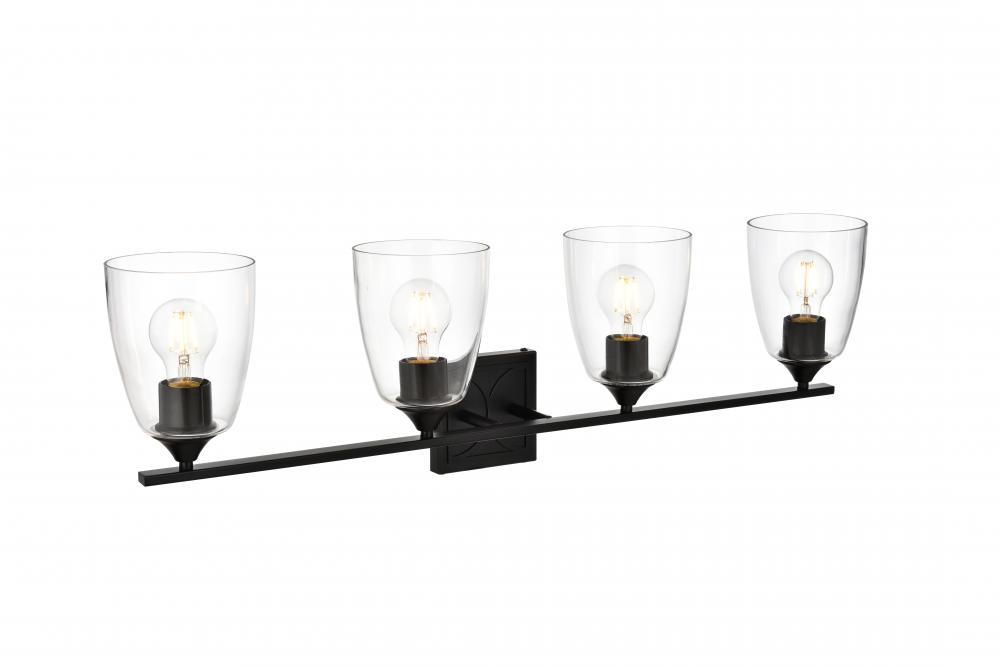 Defined by a sleek metal arm extends to suspend the clear tapered glass shade. A contemporary stunner, it shows off the straight line details from the backplate and the streamline thin metal arm. Compatible with dimmers, so you'll have the right amount of light in any given time of the day. Completely versatile, you can place this wall light as an uplight or downlight. Rated for use in damp locations, this will work perfectly over a vanity in your bathroom.