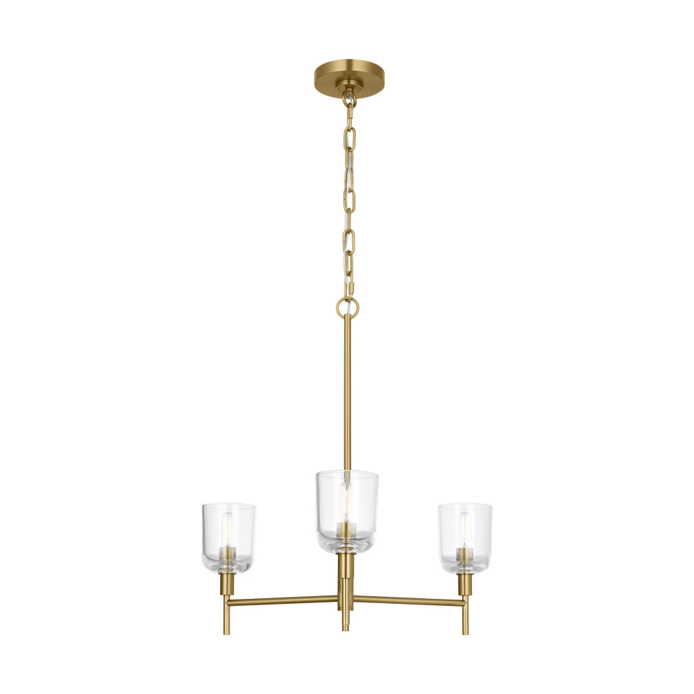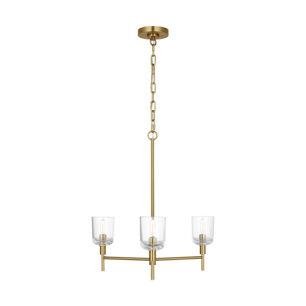 Crafted with Steel in a Burnished Brass finish with clear glass shades