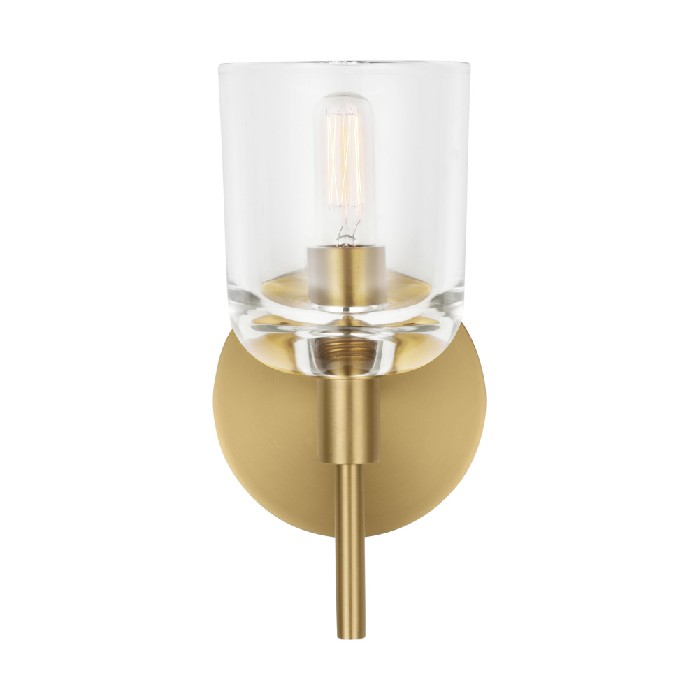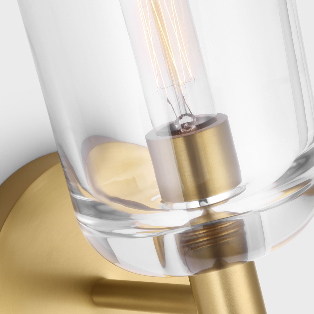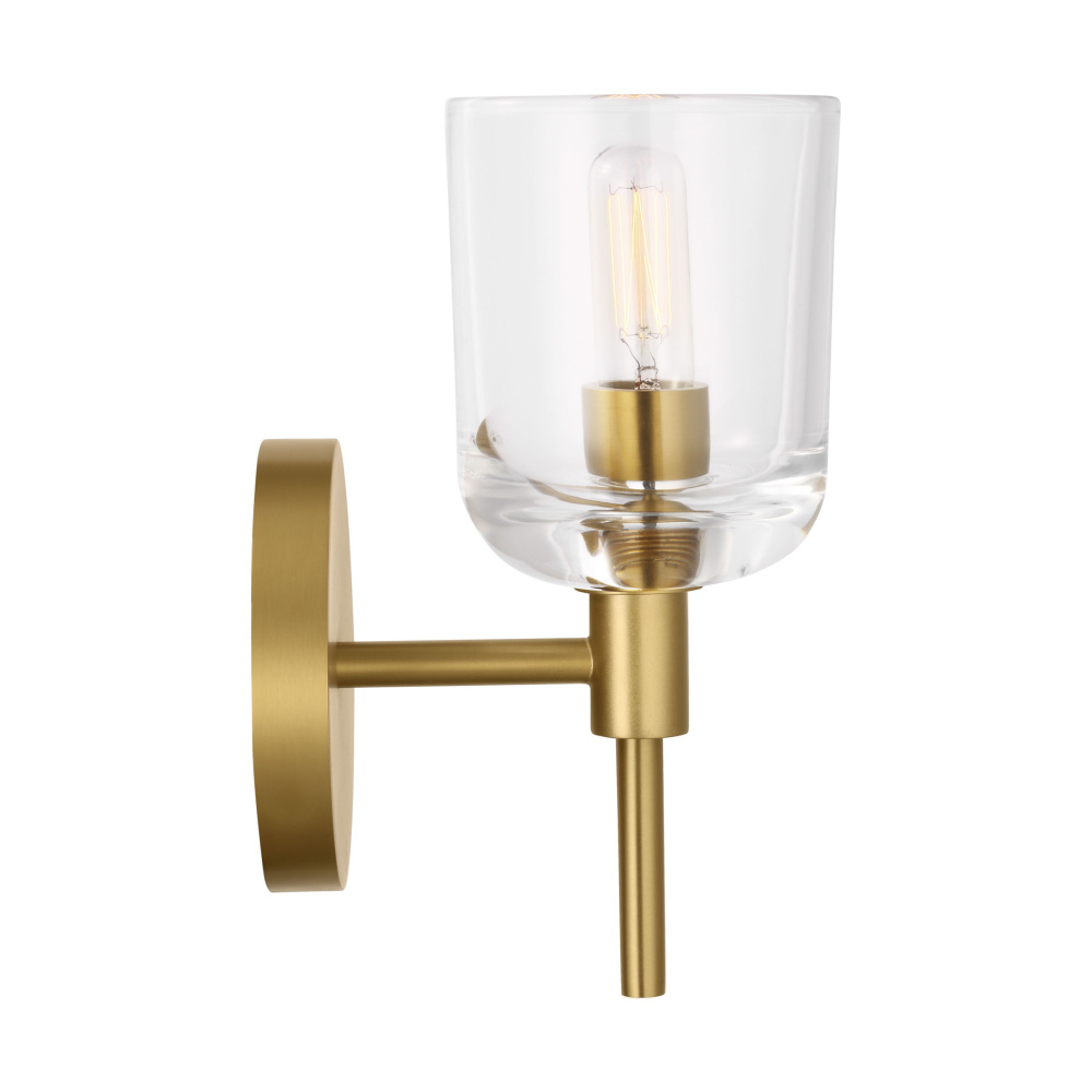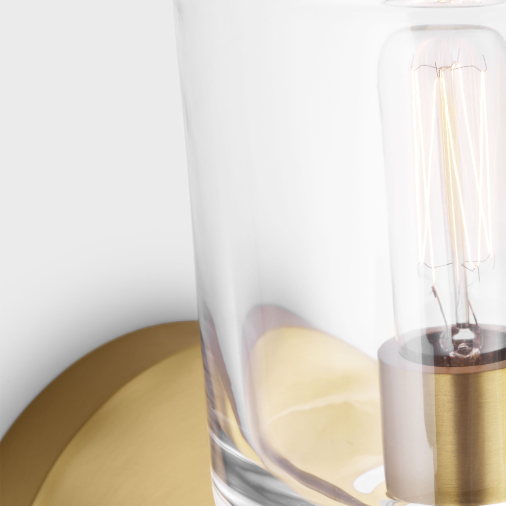 Crafted with Steel in a Burnished Brass finish with clear glass shade