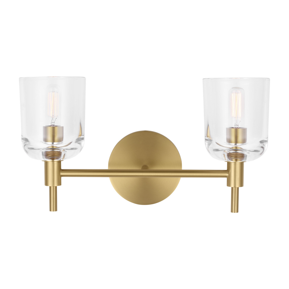 Crafted with Steel in a Burnished Brass finish with clear glass shades