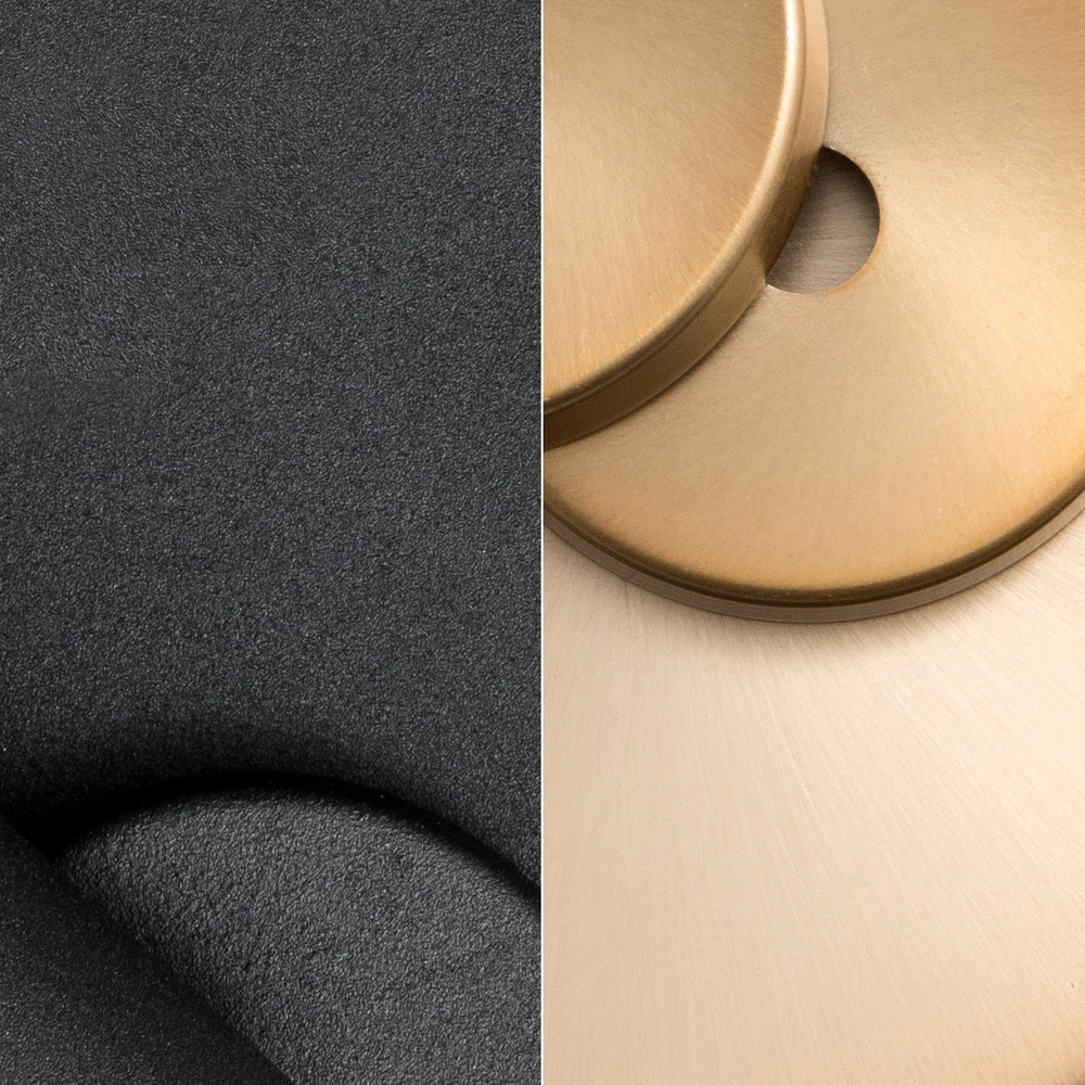 Black Forged deep black finish mixed with Vibrant Gold metal finish provides a vivid splash of contrast to a room's décor. These finishes work beautifully together and perfect for a variety of décor aesthetics.
