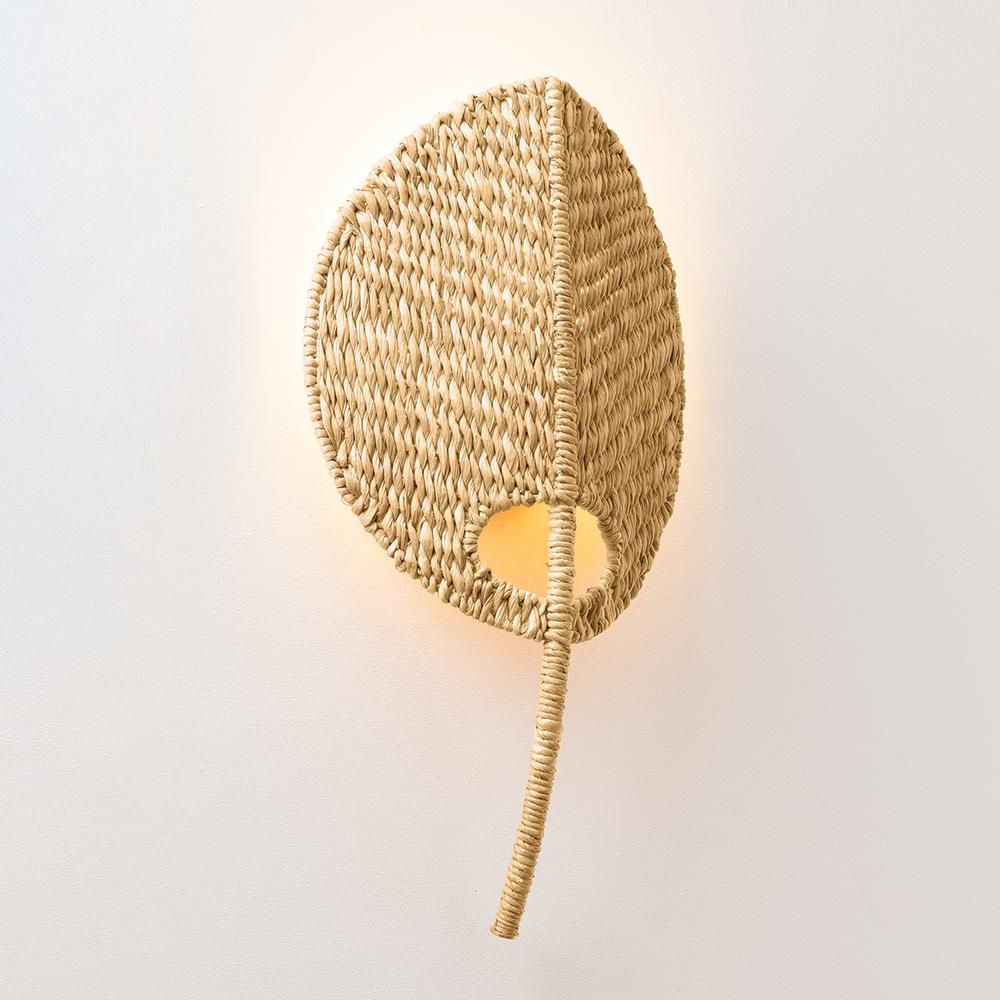 The striking leaf-inspired design of Haverstraw creates a refreshing focal point on a wall. in addition to complementing the organic shape of the fixture, the tight Abaca fiber weave provides rich texture and dynamic color variations. While the concealed bulb emits a glow onto the wall behind the fixture, it’s the oval-shaped cut-out that allows the most light to escape. Due to the one-of-a-kind nature of the medium, exact colors and patterns may vary slightly from the image shown.