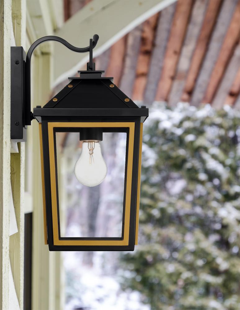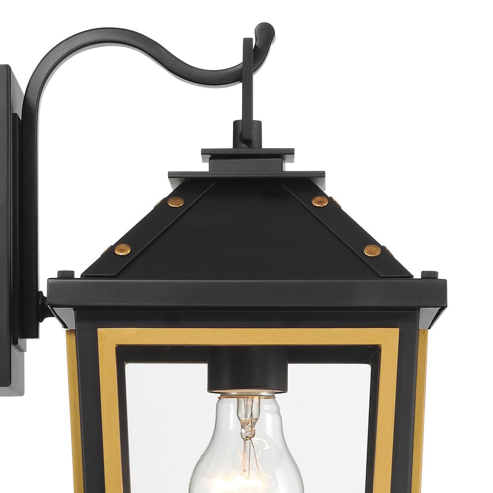 The Hawkins collection offers a modern take on traditional design. It showcases elegant, stately details that highlight a two-tone finish, clear glass panels, and gold rivet accents, seamlessly blending timeless charm with modern sophistication. The vintage charm makes it an ideal choice for creating an inviting and stylish outdoor space.