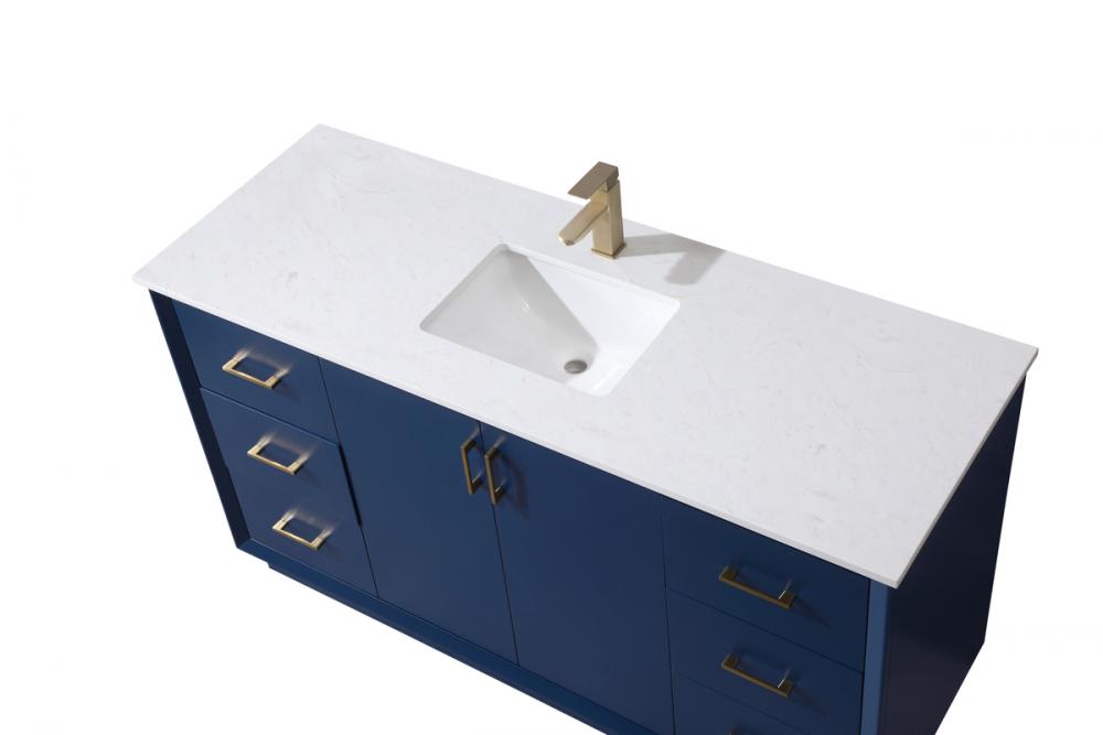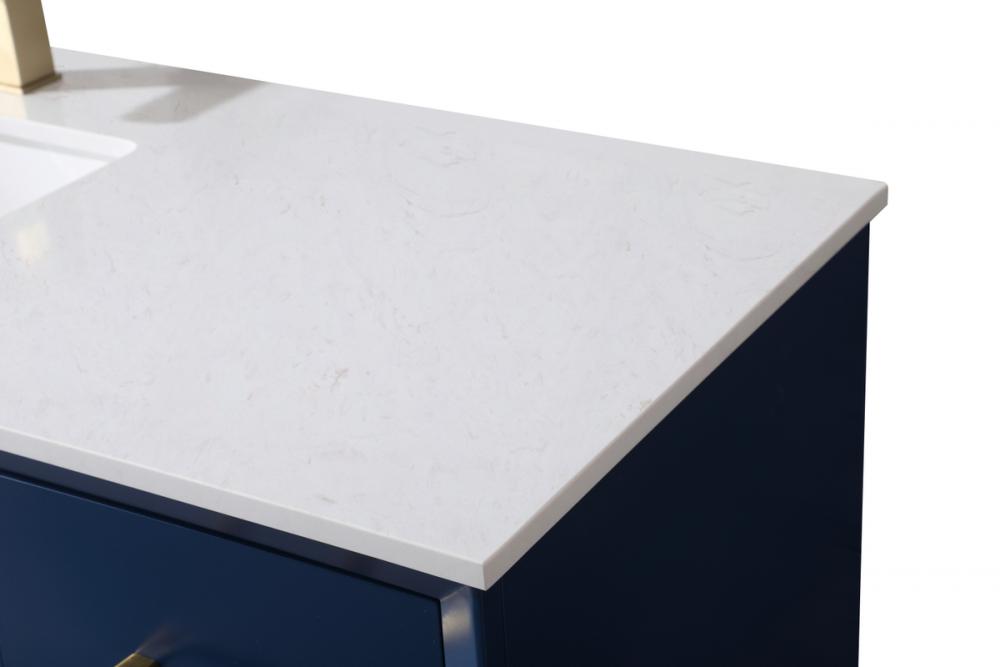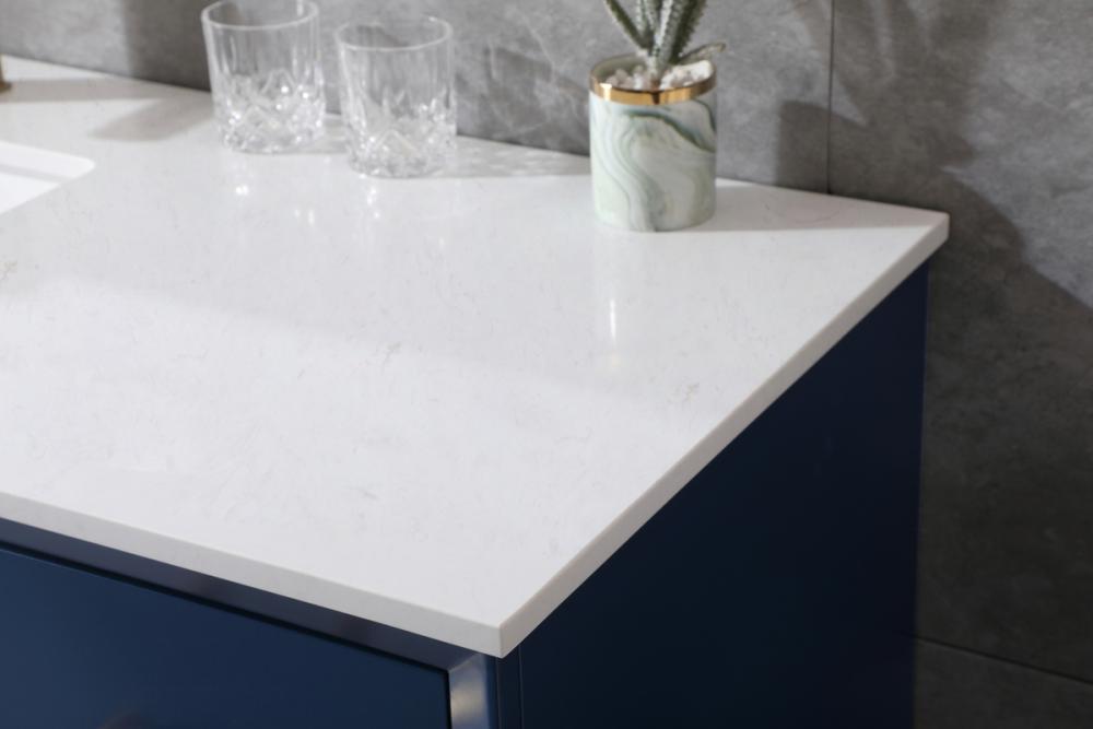 Experience luxury with a 0.75-inch thick engineered marble countertop featuring a calacatta design with light grey veining, seamlessly blending durability with timeless elegance.
