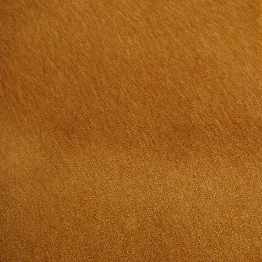 Tawny hair-on-hide is a fresh new material for our chic settee. Designed with square track arms and a cantilevered seat, each panel is beautifully matched from seam to seam to float effortlessly within a room. Hide will vary.